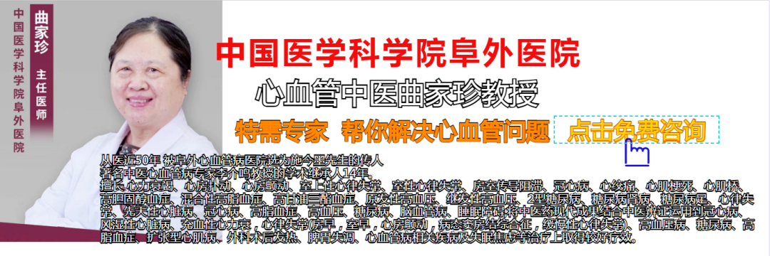 因为在平台科普,很多粉丝留言看病难、挂号难的问题,路途遥远等诸多因素的影响,虽然我已经七十多岁了,但我还是希望能够力所能及的发光发热,我是阜外中医曲家珍教授,我从医近50年,我从来没有给病人乱开过一门药,也不会吓唬病人,能不做检查,也不会让大家做,让患者朋友能省则省,希望大家点开小红心支持我一下,这样方便你获得更多的健康知识。如果你有这方面的困扰,可以留言给我