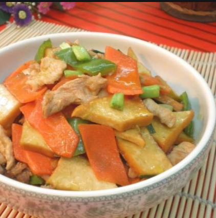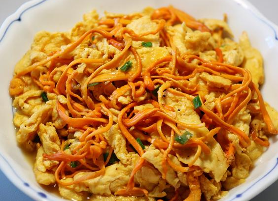 3.不粘锅少许油,鸡蛋放盐打散,炒结块盛出;
