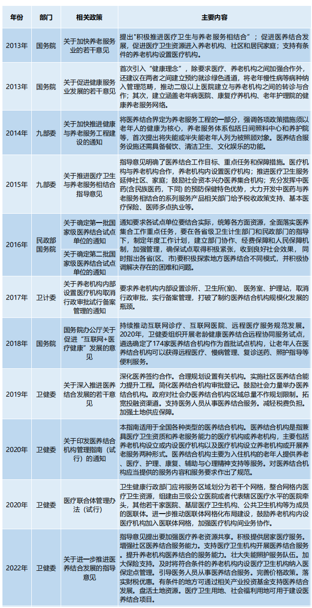 历年来出台各种优惠补贴、土地政策及支付体系细化专项鼓励政策百余项。在“健康中国”战略引领,健康服务业业态指引,养老服务设施用地保障,养老服务市场培育激活,养老支付体系逐渐完善的背景下,标准化、规范化、多产业融合成为我国康养产业主基调。