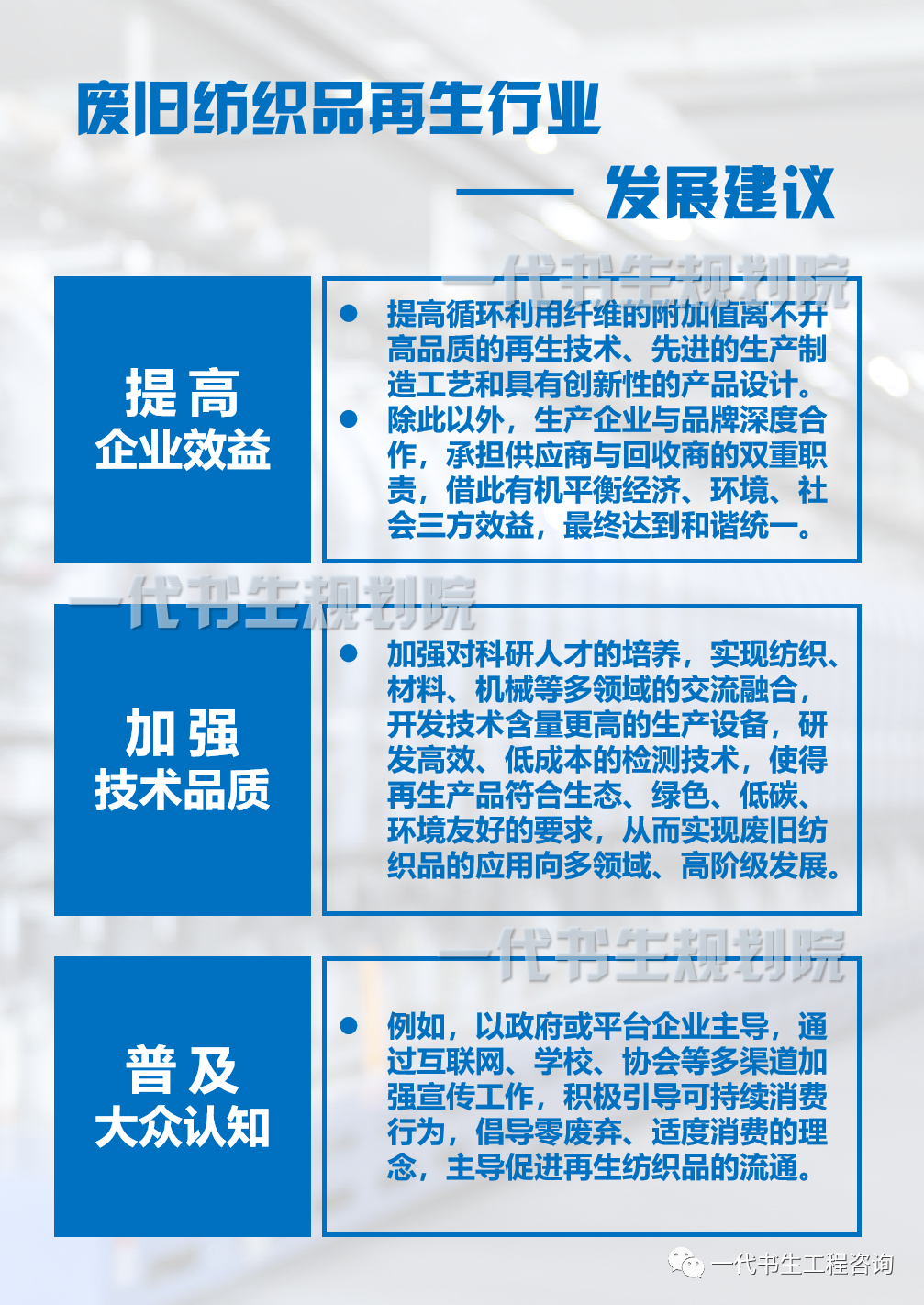 废旧纺织品回收再利用,是发展循环经济、走可持续发展的道路的一项朝阳产业,不仅利国利民,而且大有可为,前景非常广阔。以下是一代书生规划院整理并发布的关于废旧纺织品再生行业的相关分析与建议,仅供行业发展参考。