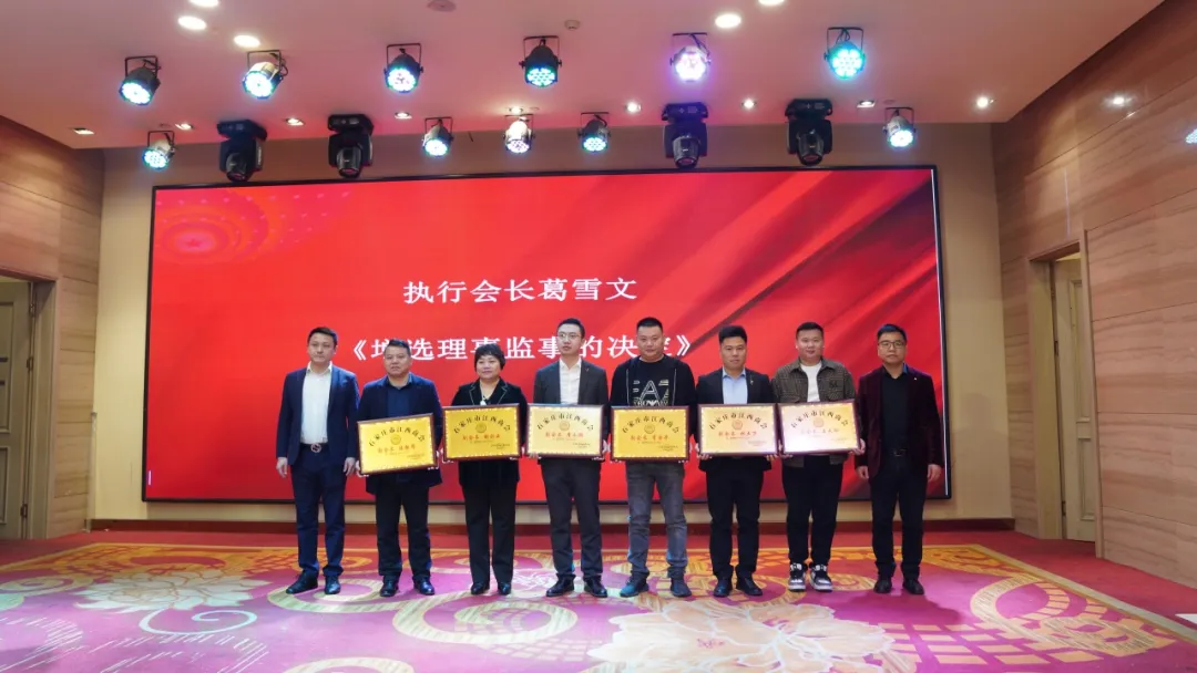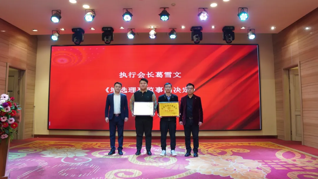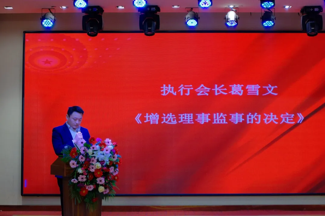 审议通过新增选的理事、监事、副会长、常务副会长名单,由执行会长葛雪文宣读(为新增选的监事、理事、副会长、常务副会长授牌)