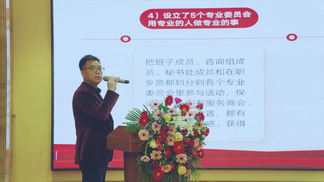 会长赵书红以讲解PPT的形式向大会作了“团结奋进的石家庄市江西商会”履职演讲。赵书红从“商会基本情况,我们想把商会做成什么样,商会的宗旨、价值、愿景、目标,围绕目标我们做了哪些工作,商会取得的成就与荣誉,未来我们将怎么做”等6个方面阐述了江西商会“家、组织、平台”三大功能与作用。他说,在这里,能见到乡亲,听到乡音,吃到乡菜,一解乡愁,这是个有温暖、有温度、有大爱的地方,是人人讲奉献、讲付出,人人为家做贡献的地方,是所有在石乡友的温馨家园、情感依托。商会整合了政商领域各方面的资源,是任何机构与个人不可轻视的一支力量,为乡友在石的发展保驾护航,是在石乡友在外打拼的强大靠山、精神支柱。商会是一个整合资源、广交朋友的平台,能够为会员企业之间、企业与政府之间、会员与社会各界之间搭起交流沟通平台,实现资源共享、优势互补。