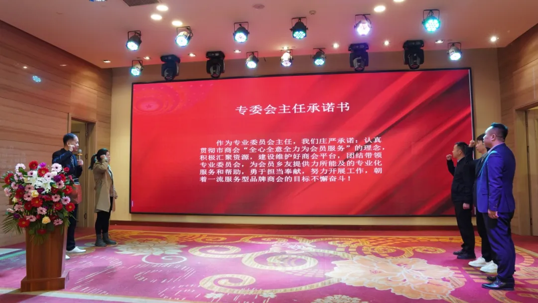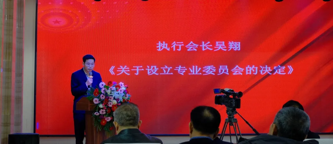审议通过《关于设立专业委员会的决定》,由执行会长吴翔宣读这一决定(为5个专委会授旗,专委会主任做集体承诺)