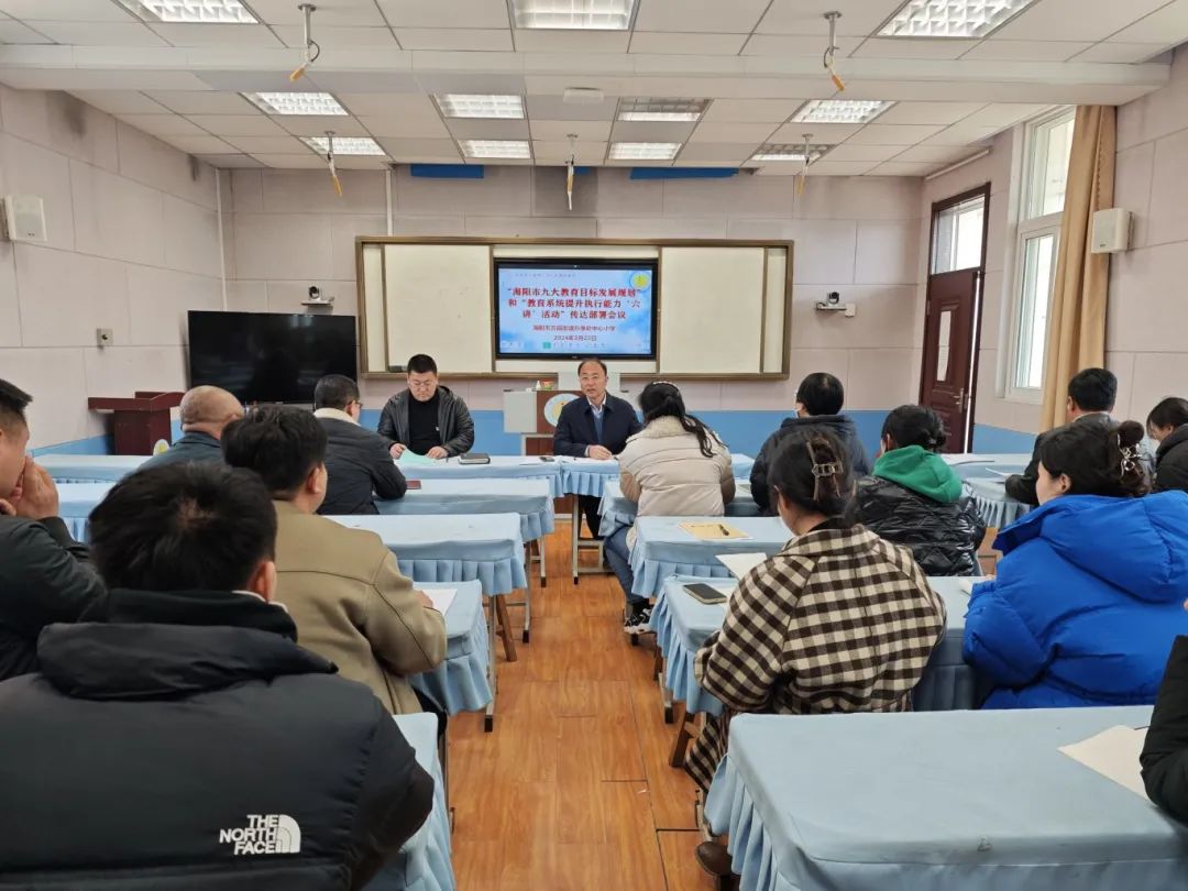 3月22日下午,方圆街道中心小学召开专题会议,落实海阳市教育系统九大教育目标发展规划暨“六讲”活动启动会议精神。会上,王福浩校长带领全体教师深入学习文件精神,要求全体教师发扬“六讲”作风,狠抓落实,全面提升学校教育教学质量。(信息员:张鲁云)