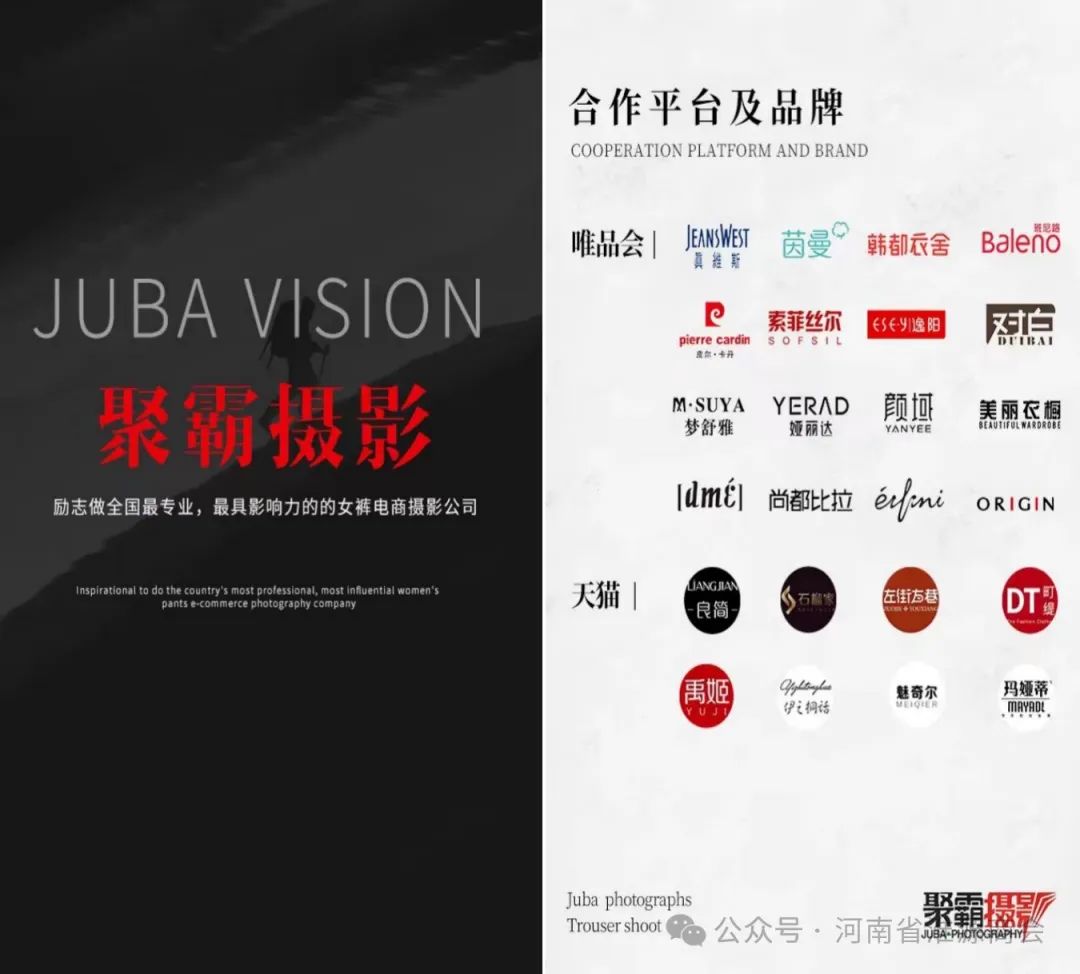 郑州聚霸摄影成立于2013年,是一家专业电商摄影与设计的服务机构,致力于为客户提供一站式电子商务,协助商家打造视觉效应、提升商家品牌价值;客户的好评率达到99%以上,是阿里巴巴和唯品会官方合作摄影服务商,目前拥有上千家稳定合作的天猫商家和唯品品牌;郑州聚霸摄影是国内唯一一家拥有独立签约模特20位以上的电商摄影公司,公司拥有三个影棚,分别为1500㎡、800㎡、400㎡,有12组160人以上的摄影团队,独家签约模特23位。公司共同求新、求异、求变、求不同,力争为客户提供专业个性化的电商视觉服务。