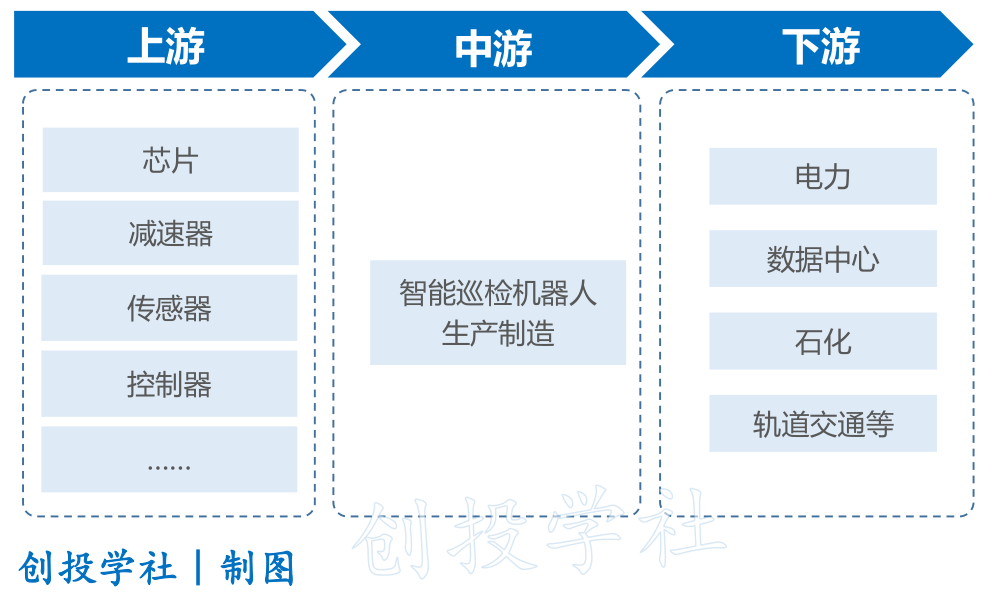 智能巡检机器人的产业链可分为上游核心零部件供应、中游本体及集成制造、下游应用场景三个环节。上游供应商提供的核心零部件,如芯片、传感器、控制器等,是智能巡检机器人高效运行的基础;中游企业则负责将这些零部件集成,打造出满足不同场景需求的巡检机器人;下游应用主要集中在电力、数据中心、石化、轨道交通等领域,这些行业对于巡检的精确性和安全性要求极高。