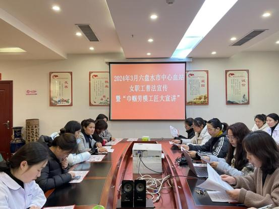 按照六盘水市直属机关工会关于开展2024年贵州省女职工普法宣传活动暨“巾帼劳模工匠大宣讲”活动相关要求,大力弘扬劳模精神、劳动精神、工匠精神,扎实做好职工思想政治引领,广泛营造维护女职工合法权益的良好氛围,3月20日,市中心血站工会组织全站女职工开展普法宣传暨“巾帼劳模工匠大宣讲”活动。活动首先进行了普法宣传,倡导全站女职工充分利用法律维护自身权益;组织观看了“巾帼匠心逐梦强国复兴有我——巾帼劳模工匠大宣讲走进中国人民大学”直播回放。此次活动宣讲场次1次,宣讲人数3人,受众人数45人。