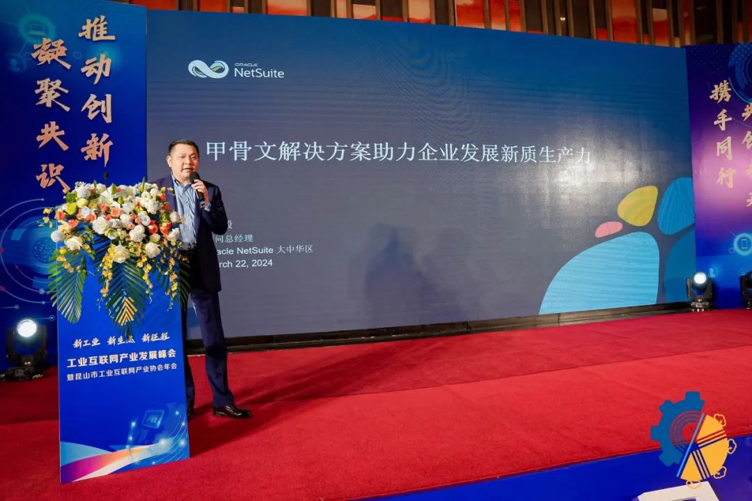 甲骨文 NetSuite 大中华区顾问总经理何毅为大会为我们介绍Oracle(甲骨文)解决方案如何助力发展新质生产力。