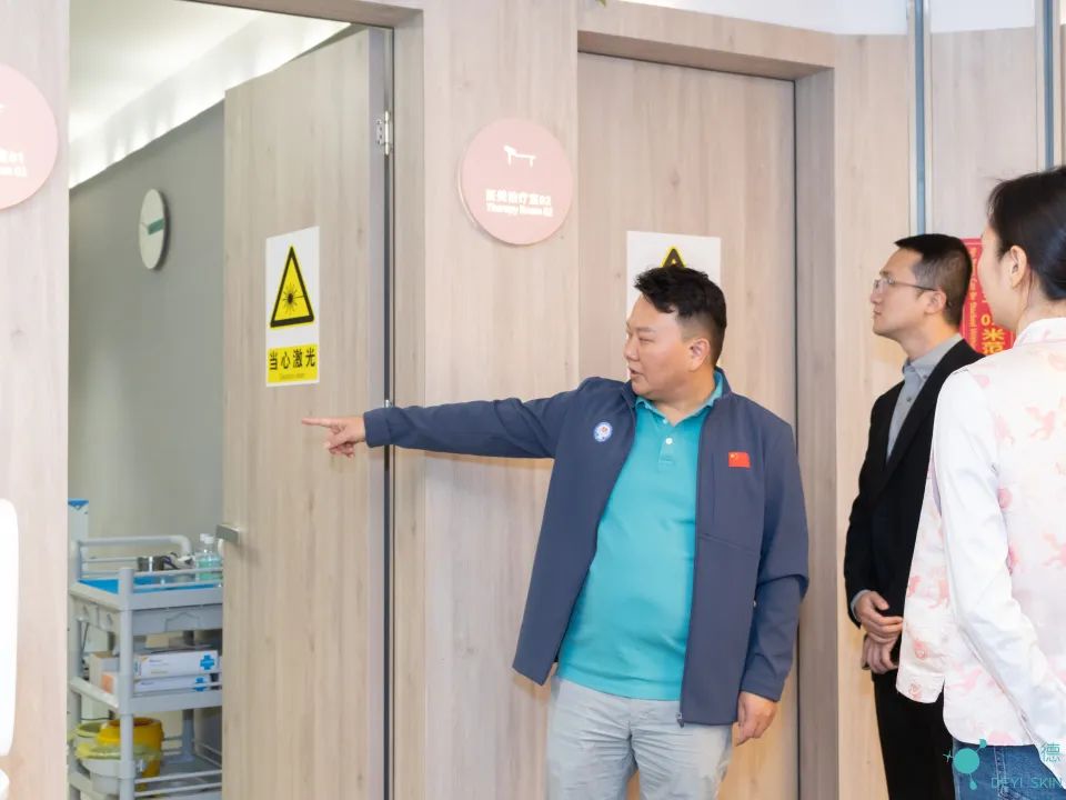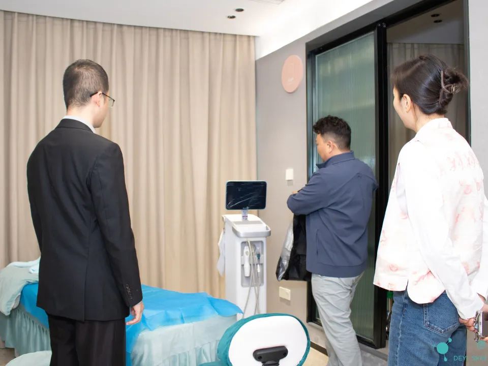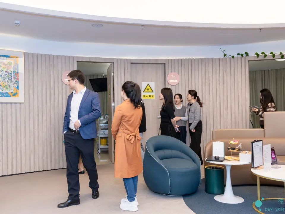 首先,在邹忠的带领下,一行人参观了德医皮肤诊所、治疗室,以及二十余台医美行业内的顶级设备。在干净整洁、明亮舒适的环境中,同学们了解到医生的专业技术、医护人员的细心关怀以及就诊者对德医皮肤的信任。