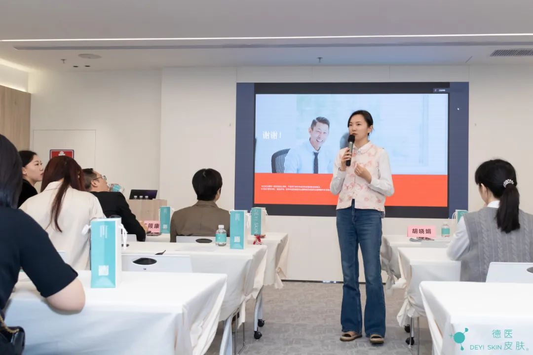 回到会议室,胡晓娟为参访活动致辞,首先她向邹忠学长和德医皮肤表示感谢,作为第一期行业导师,邹忠学长的精心准备和周到安排让校友和同学们倍感惊喜。她向大家介绍了上海交通大学深圳行业研究院的发展历程和战略定位,同时简要介绍了德医皮肤。