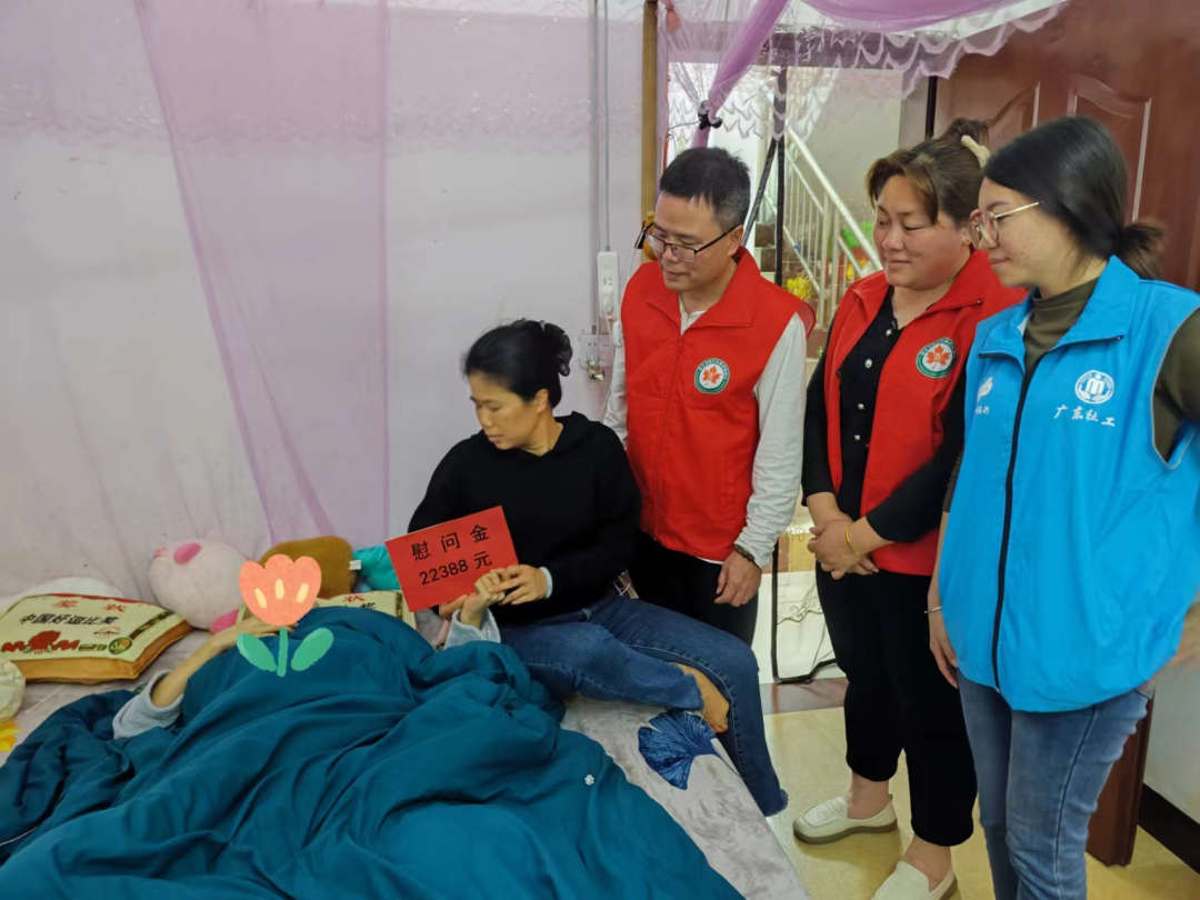 据了解,陈美希今年13岁,其家庭为枫湾镇低保户,父亲在2021年10月突发脑出血中风致肢体二级残疾,失去劳动能力,陈美希在2023年10月确诊为恶性骨肉瘤,现因病情恶化转入广州中医院进一步治疗。在得知陈美希病情后,枫湾镇政府领导非常重视,持续关注其病情进展,并迅速组织镇民政部门协助陈美希家庭申请低保金提标和申请小额临时救助。在2024年1月镇民政部门通过区民政局成功申请了一心公益基金会重大疾病救助金2万元。为更好的帮助陈美希解决医疗费用的问题,镇民政部门在镇主要领导的联系下,对接枫湾镇商会开展爱心捐款活动,短时间内筹得善款22388元。