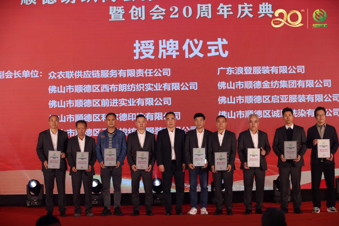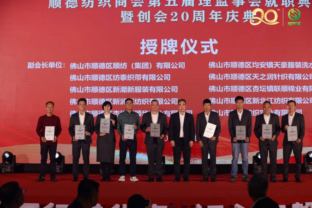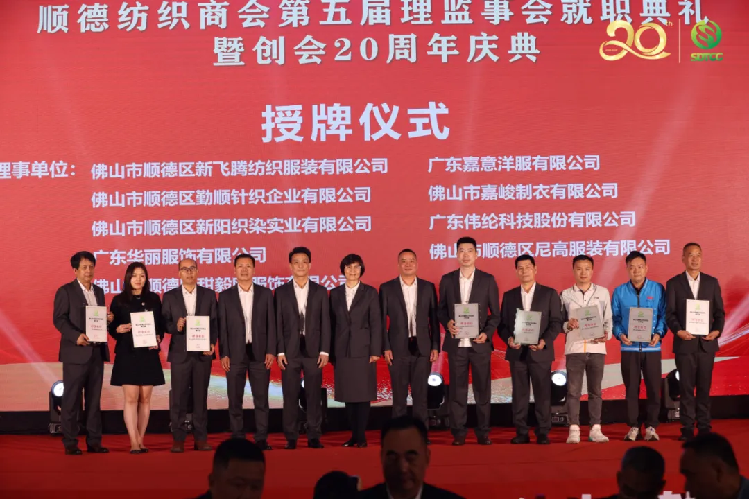 3月21日,顺德纺织商会第五届第一次会员大会暨创会20周年庆典在顺德大良喜来登成功举办!佛山市顺德区人民政府何翔威副区长、佛山市国资委党委柯宇威副书记、佛山市顺德区人大常委会周驭洪副主任、佛山市顺德区经济促进局梁嘉斌局长、佛山市顺德区政协曾利平专职常委、佛山市顺德区工商业联合会林小波专职副主席、佛山市生态环境局顺德分局李克亮副局长、佛山市顺德区科学技术协会梁智斌主席、中国牛仔布专业委员会委员、武汉纺织大学技术研究院易长海教授、广东省纺织协会陆少波会长、广东省服装服饰行业协会何志康专职副会长、广东省纺织协会李茵秘书长、佛山市纺织服装行业协会会长,顺德纺织商会永远荣誉会长邓剑鸿、广州市十三行商会邵湖珍会长、恩平市纺织服装协会冯金帆常务副会长、深圳市供应链协会陈君鹏秘书长,以及各会员企业代表、嘉宾、品牌企业和跨境电商巨头希音、拼多多海外、全量全速企业代表、友好商协会代表等共约500人出席大会。