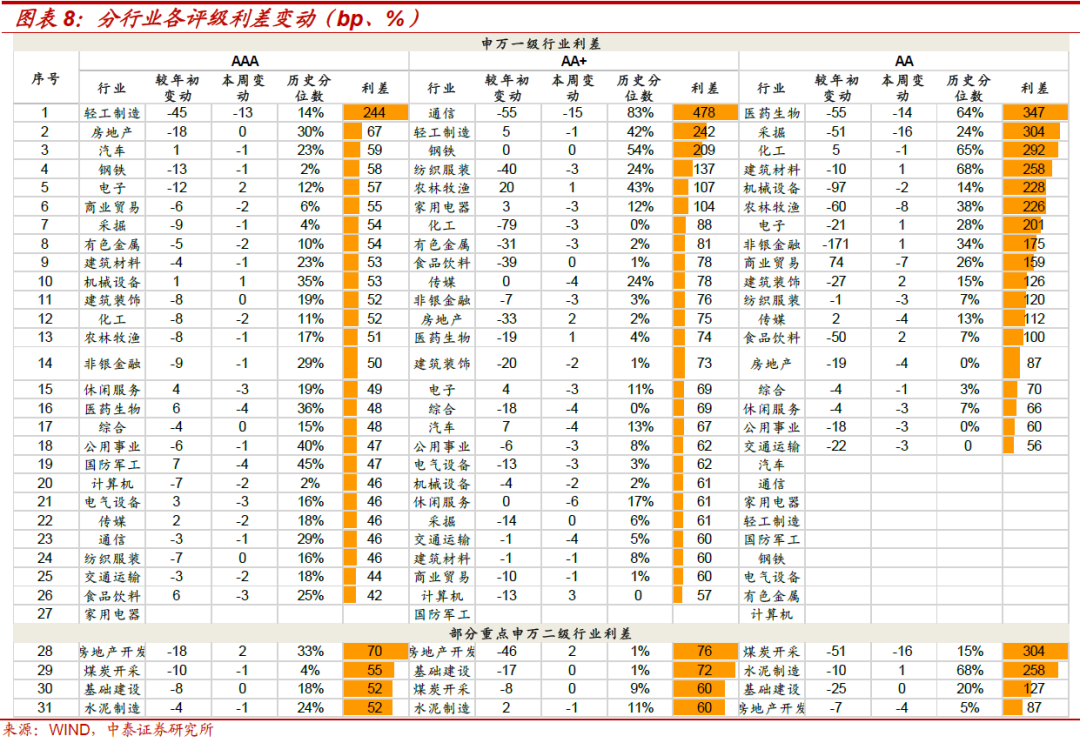 证券研究报告:城投利差小幅收窄,产业利差整体走阔