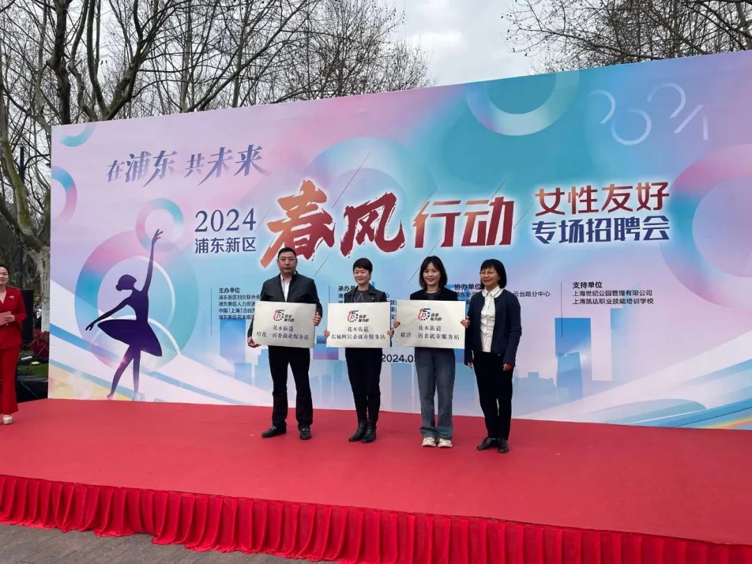 3月23日上午,区妇联、区人社局、陆家嘴管理局、花木街道在世纪公园联合举办“2024年浦东新区‘春风行动’女性友好专场招聘会”,现场揭牌成立本市首家家政服务行业零工市场,并启动2024年“俪人创客”女性创新创业大赛。