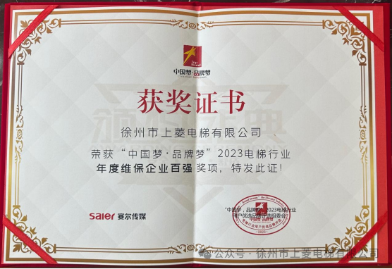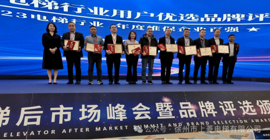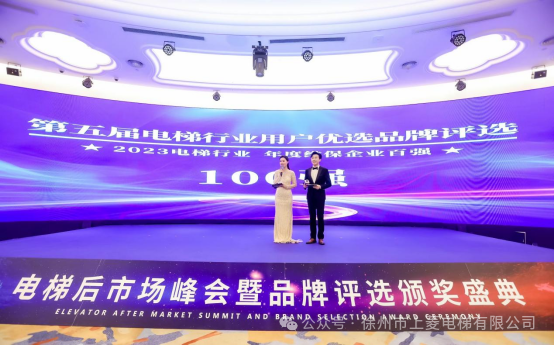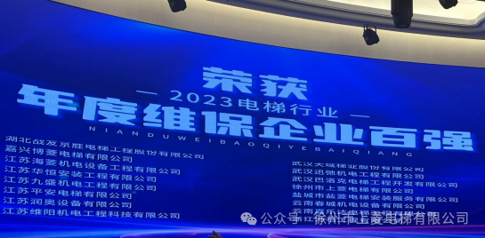 2024年3月22日,热烈庆祝徐州市上菱电梯有限公司在上海赛尔传媒主办,通力电梯有限公司、西继迅达电梯有限公司、杭州西奥电梯现代化更新有限公司、美的楼宇科技电梯公司协办的“电梯后市场峰会暨品牌评选中”被评为“2023年电梯行业年度维保企业百强”。