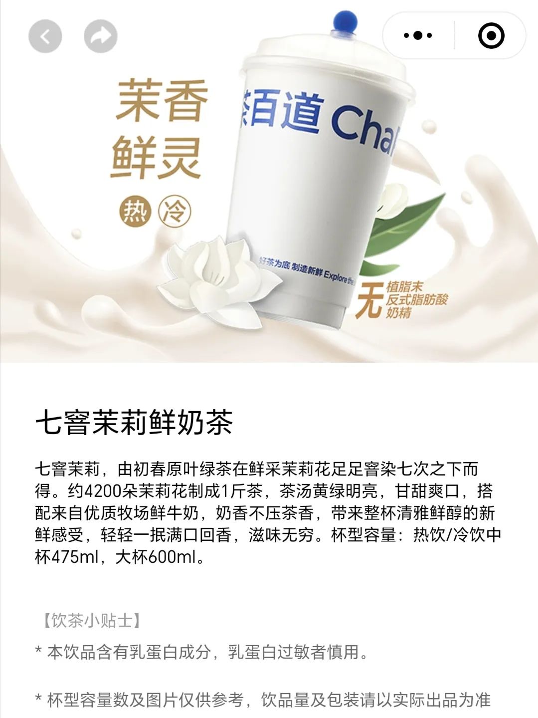 •古茗和茶百道「茉莉鲜奶茶」都是七窨