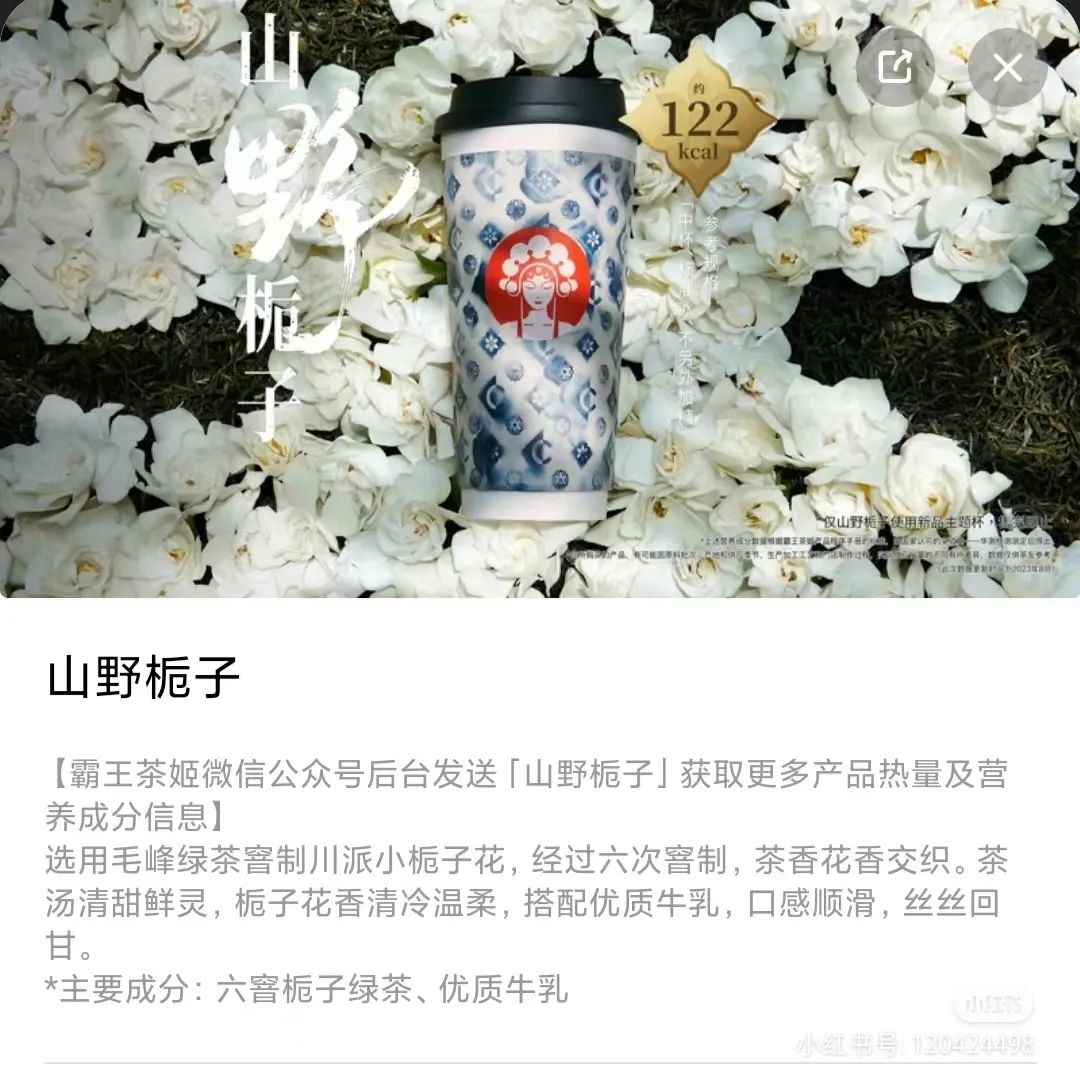 •霸王茶姬「山野栀子」采用六窨栀子绿茶