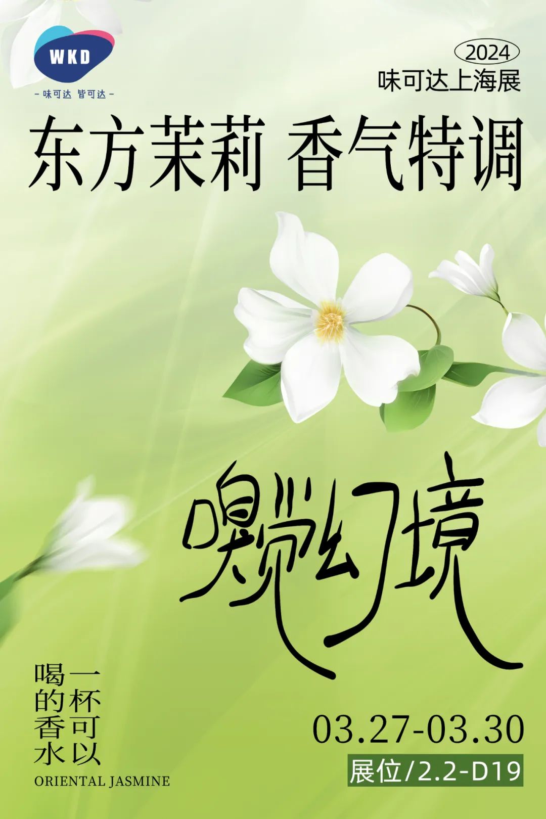 欢迎前往味可达展位(2.2馆-D19)解锁更多花香、果香风味提取液,下面给大家准备了当下热门产品,茉莉、白玉兰、香水柠檬、青柚等,感受一下隔着屏幕都能溢出来的花香叭~
