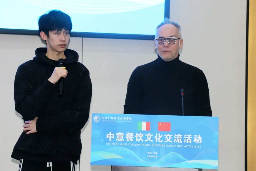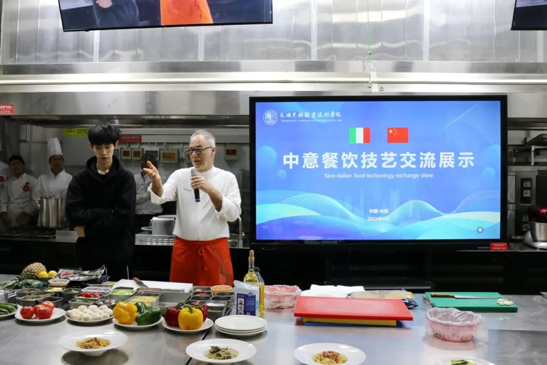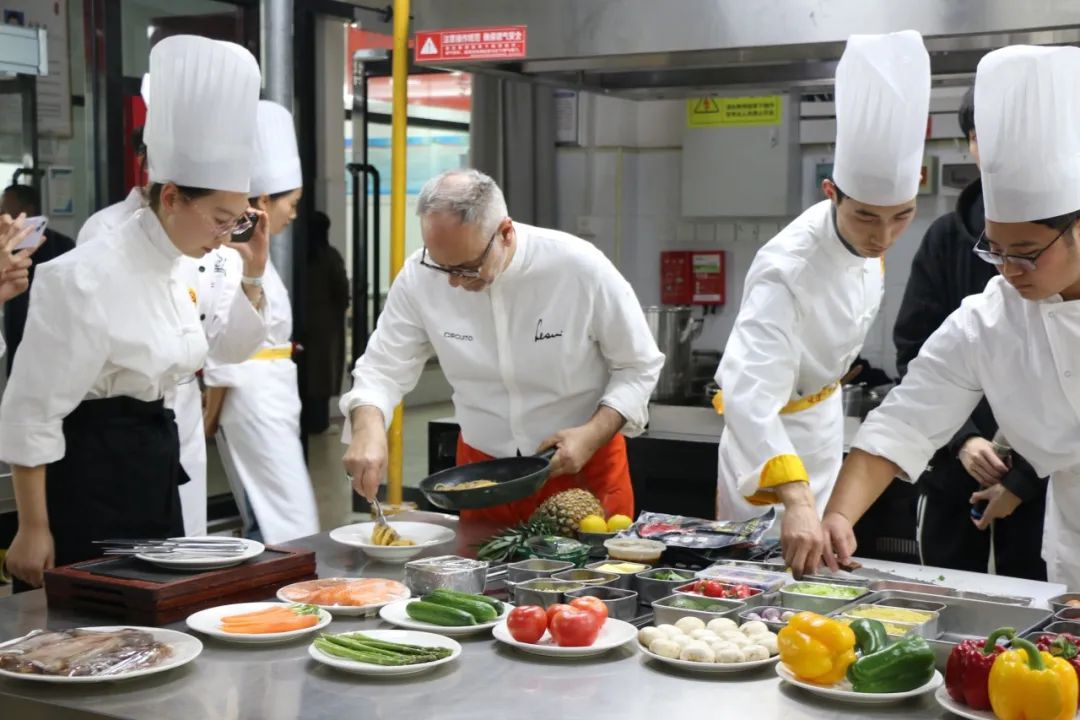 马尔切洛·雷奥尼现场为学生展示并传授意大利菜肴的烹饪艺术。中意双方就各自的烹饪技巧和经验展开了激烈的讨论,他们精湛的技艺和独特的创意赢得了在场观众的阵阵掌声。