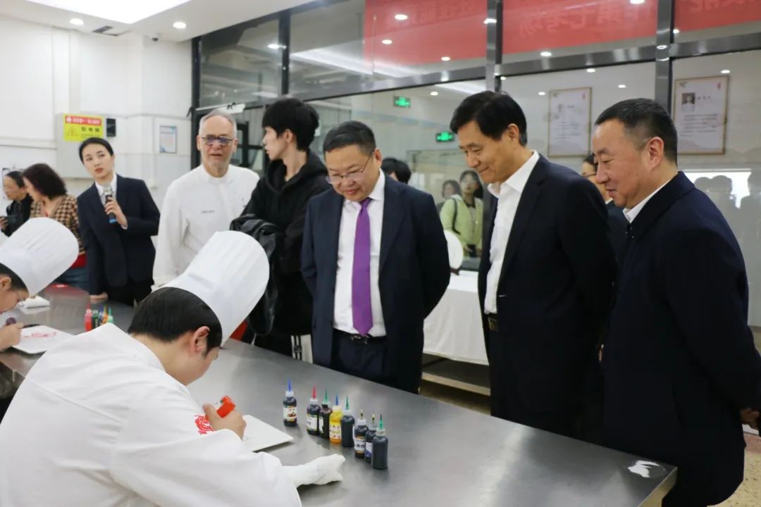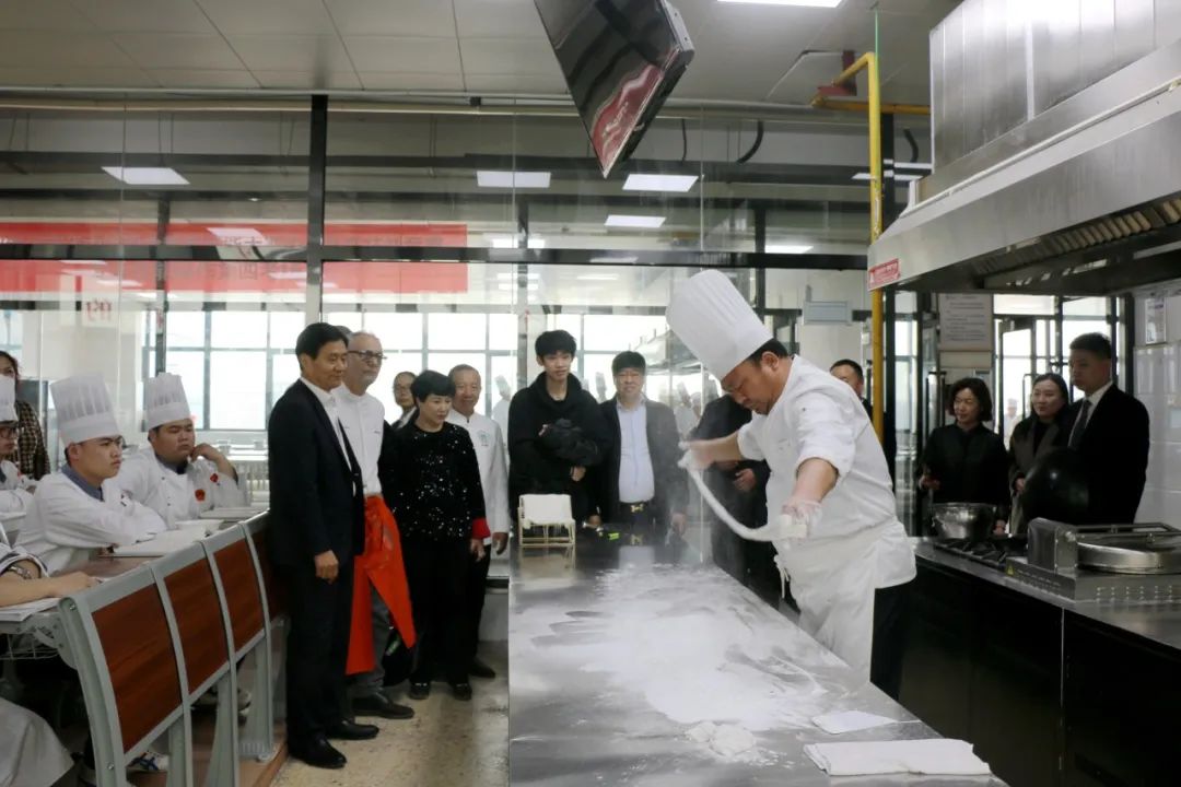 考察团一行先后参观了学校图书馆、荣誉室、中式烹调实训室、中西面点实训室、智慧小食站、雕刻面塑实训室等,对学校的教学设施、专业建设、人才培养等方面给予了高度评价。