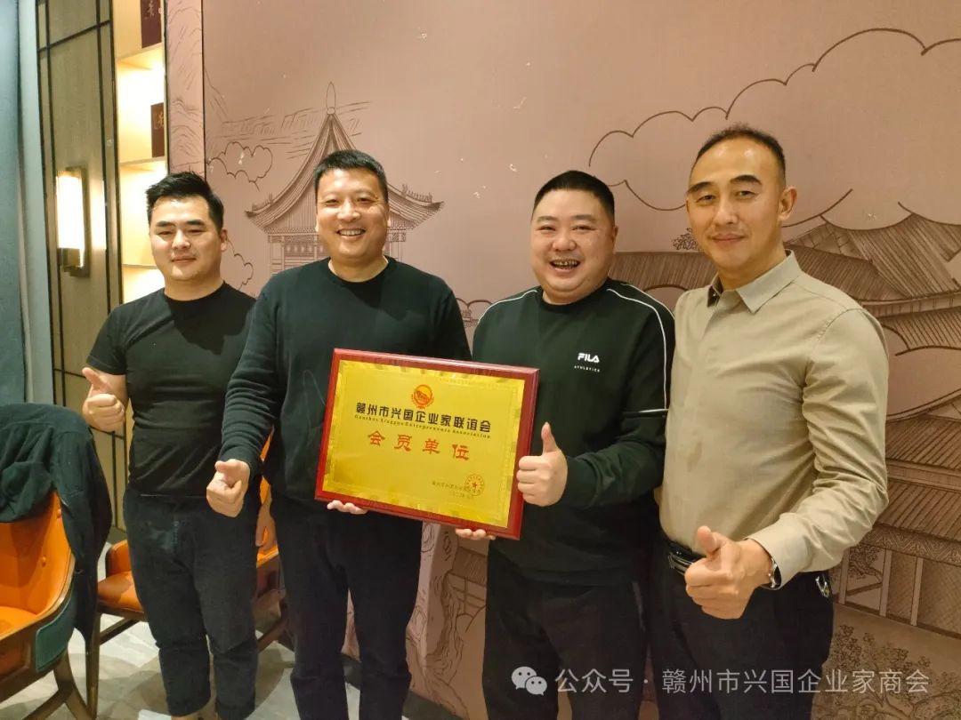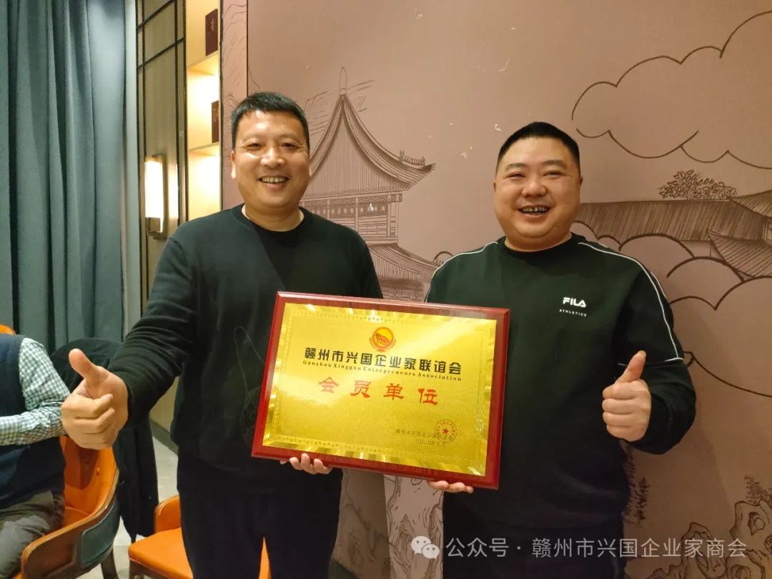 3、商会执行会长廖贤龙为到场的三组组员李文(新会员)颁发会员牌匾并合影留念。