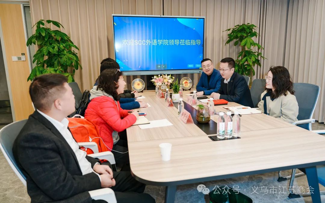3月24日,上海海关学院 (以下简称SCC ) 外语学院院长王志军教授,副院长李芬兰教授,学生助理曾荣国一行到访义乌市江苏商会。双方举行了战略合作协调会,会议在常务副会长单位欧美达公司举行。