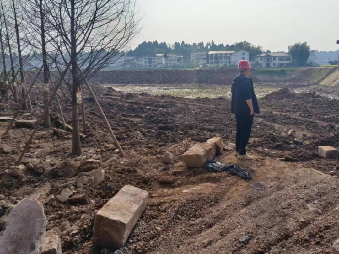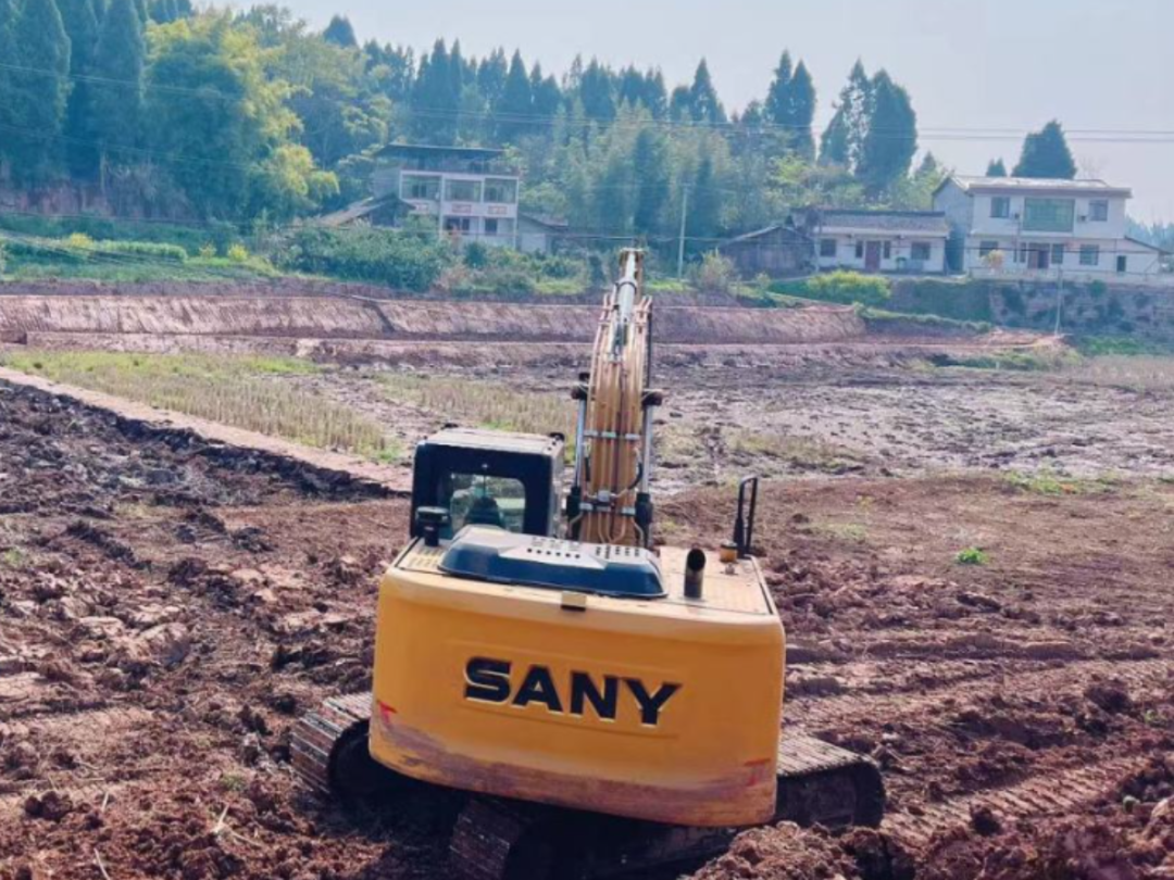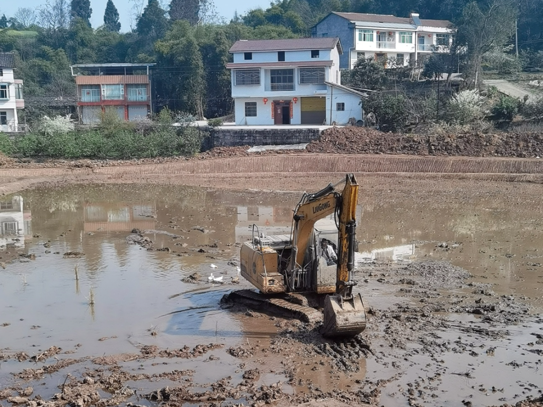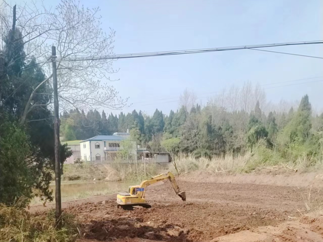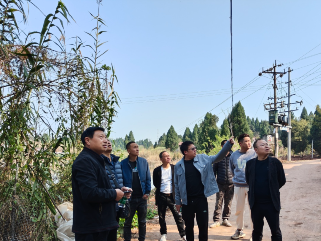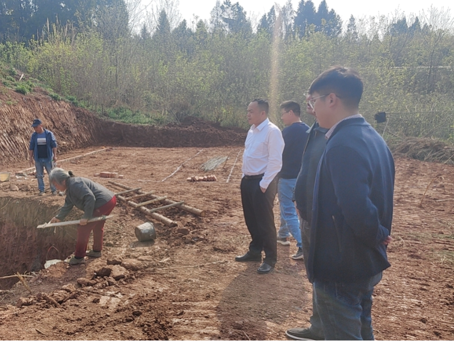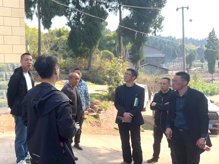 普源农业会同千佛乡乡镇干部协调推进安岳县2023年高标准农田建设项目施工进度。