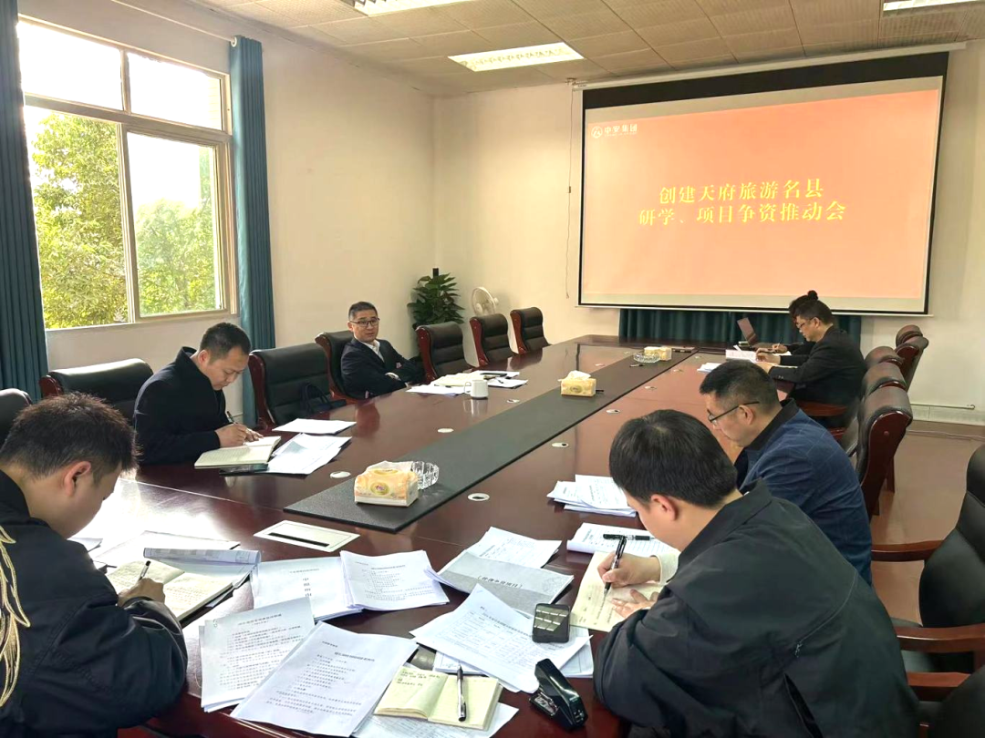 中安集团党委书记、董事长、总经理姚建主持召开创建天府旅游名县项目争资推动会。