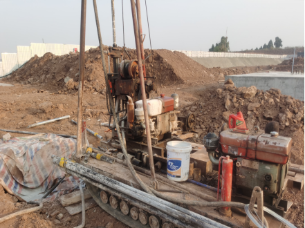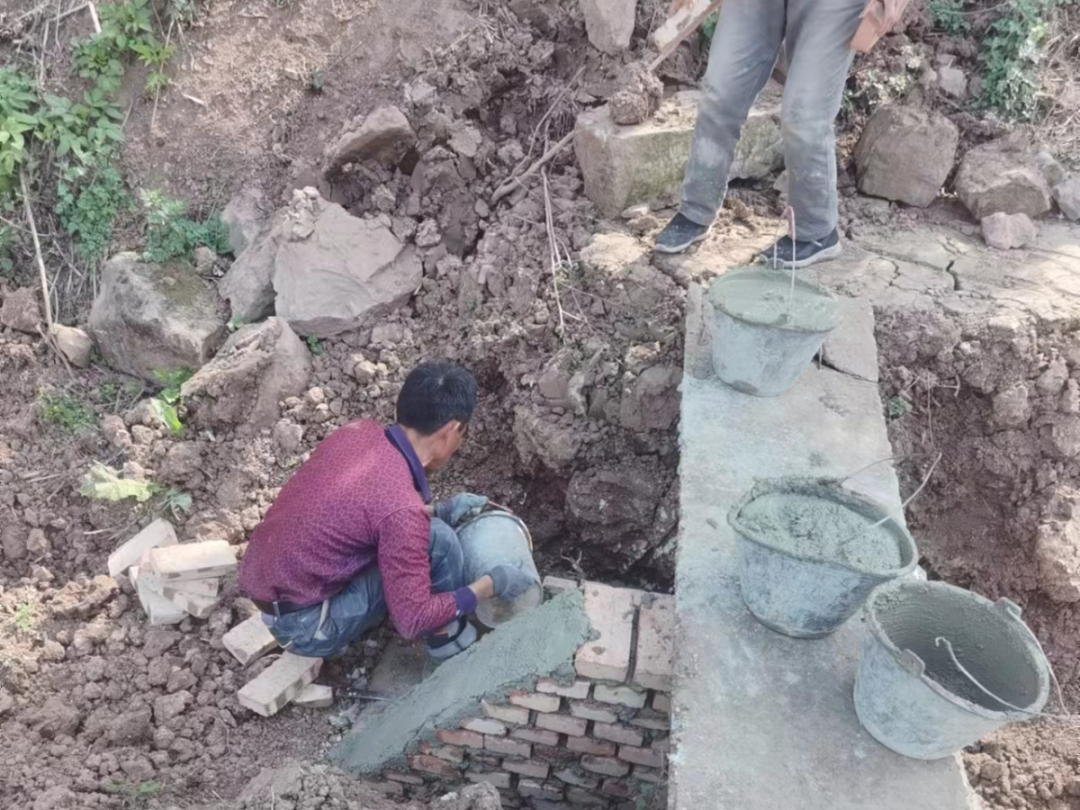 普源建筑尾水治理项目高文村点位入场施工放线。