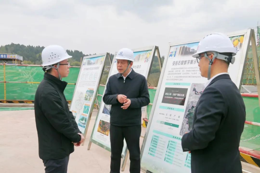 3月19日,中国工商银行四川省分行副行长刘勇一行考察调研安岳石窟数字展示中心项目,县委书记刘建华等县领导,中安集团党委书记、董事长、总经理姚建陪同。