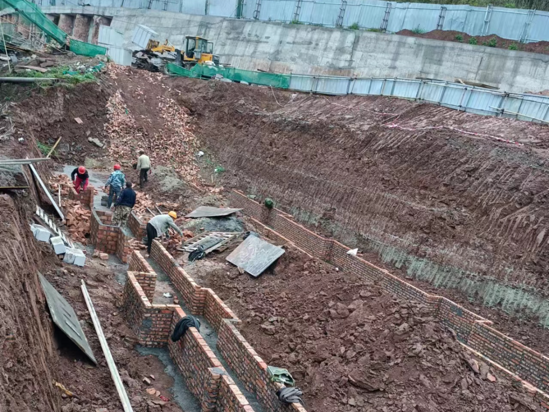 中安集团党委委员、纪委书记王贤维查看镇子镇养猪场污水处理施工情况。