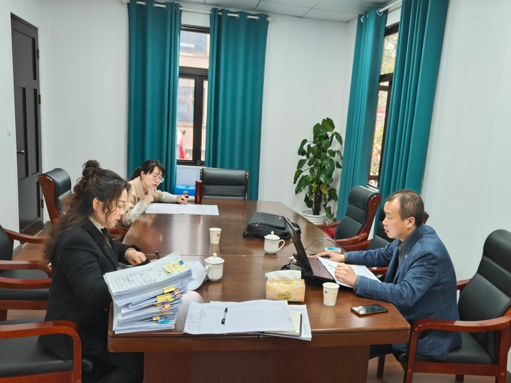 中安集团财务总监张倩与工程部审核2023年度财政结算资料。