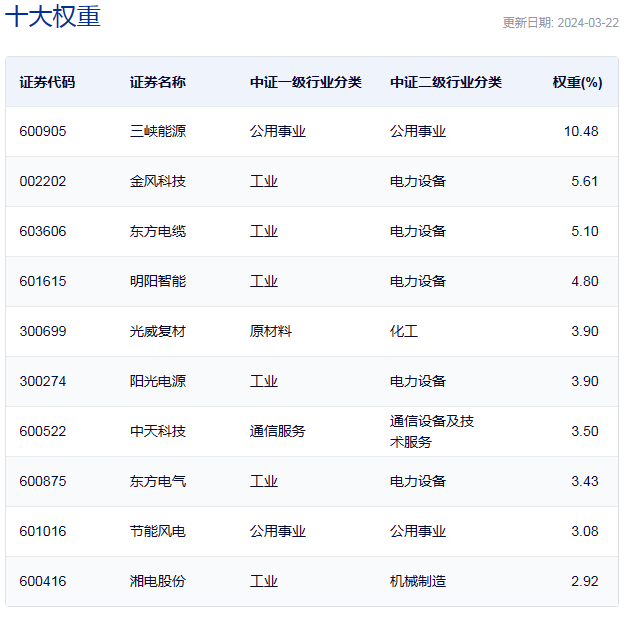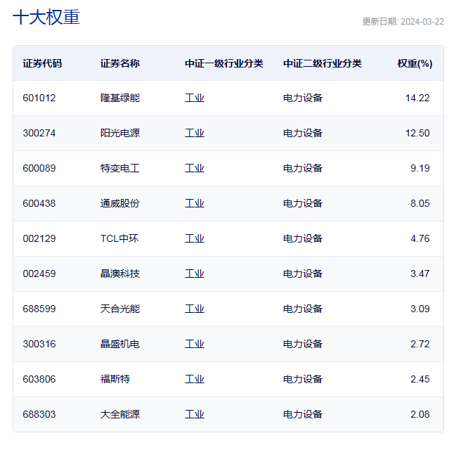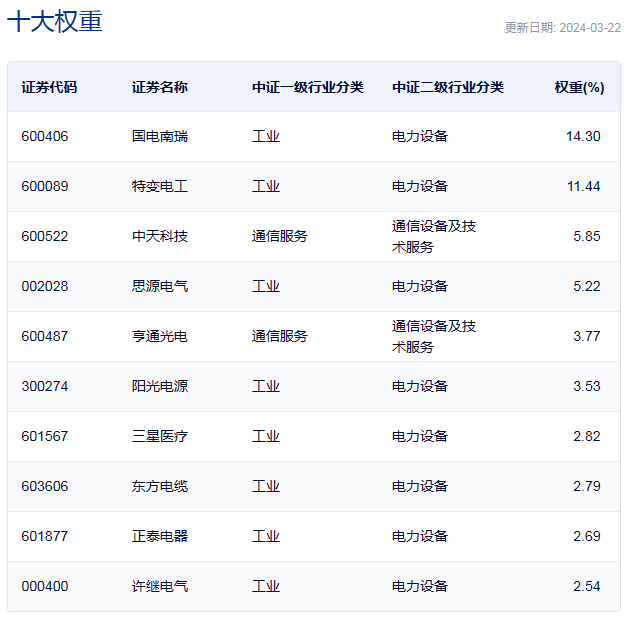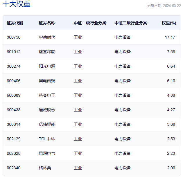 中证电力设备的前十大流通股