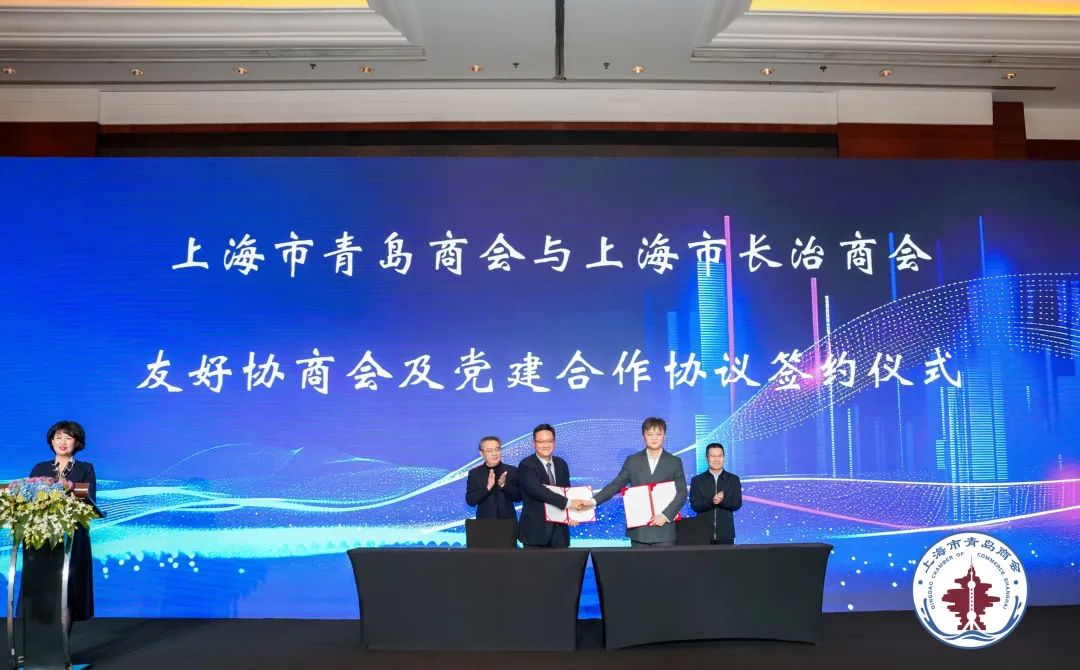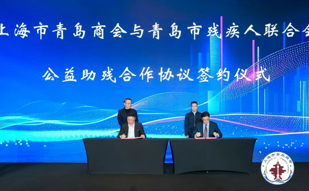 现场,上海市青岛商会与青岛市残疾人联合会签署公益助残合作协议,并与上海长治商会缔结为友好商协会,鼓励商会与相关机构团结协作,投身公益事业,践行社会责任。