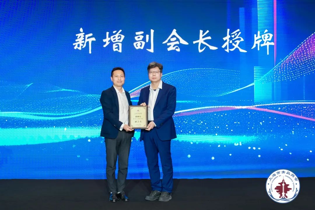 本次上海市青岛商会年会中,中国著名书画家、中国百杰书法家、世界杰出华人艺术家窦世奎先生受聘为商会顾问,商会会长陈鹏为新增顾问授牌,商会党支部书记、副会长李世群为新当选副会长孙赫宏,新当选理事