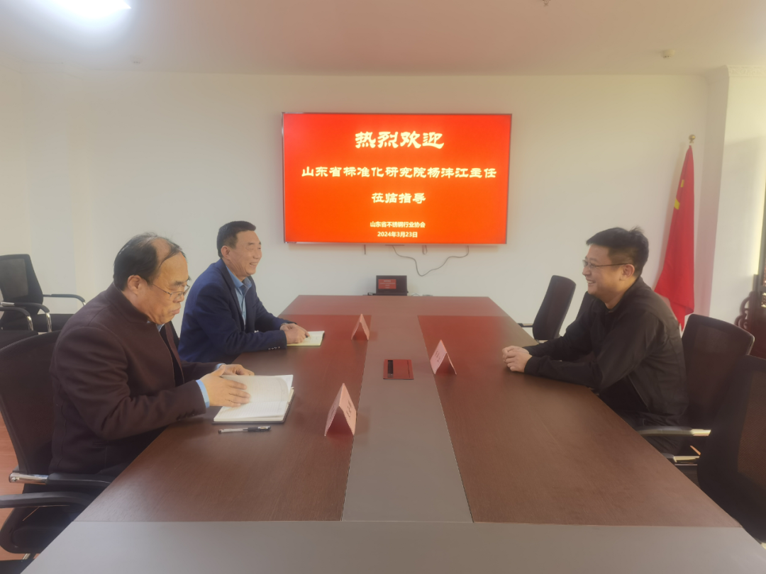 3月23日,山东省标准化研究院杨沣江主任到访山东省不锈钢行业协会,协会秘书长王大中等有关人员热情接待了杨主任。杨主任应邀来山东省不锈钢行业协会就团体标准有关事宜进行交流、指导。