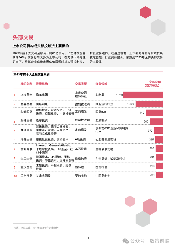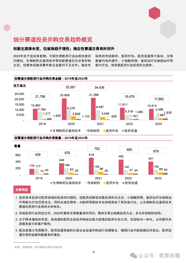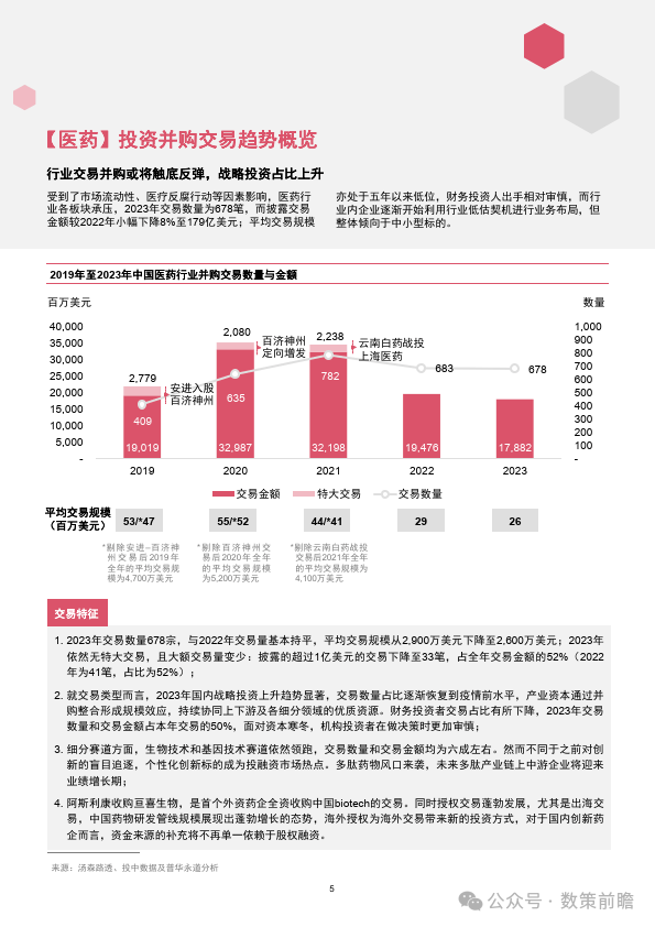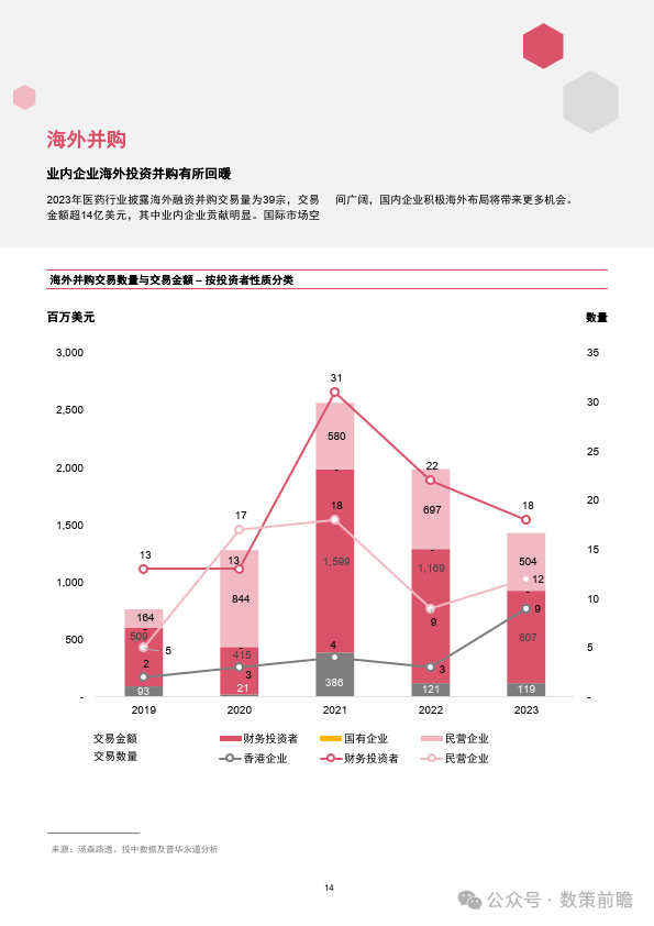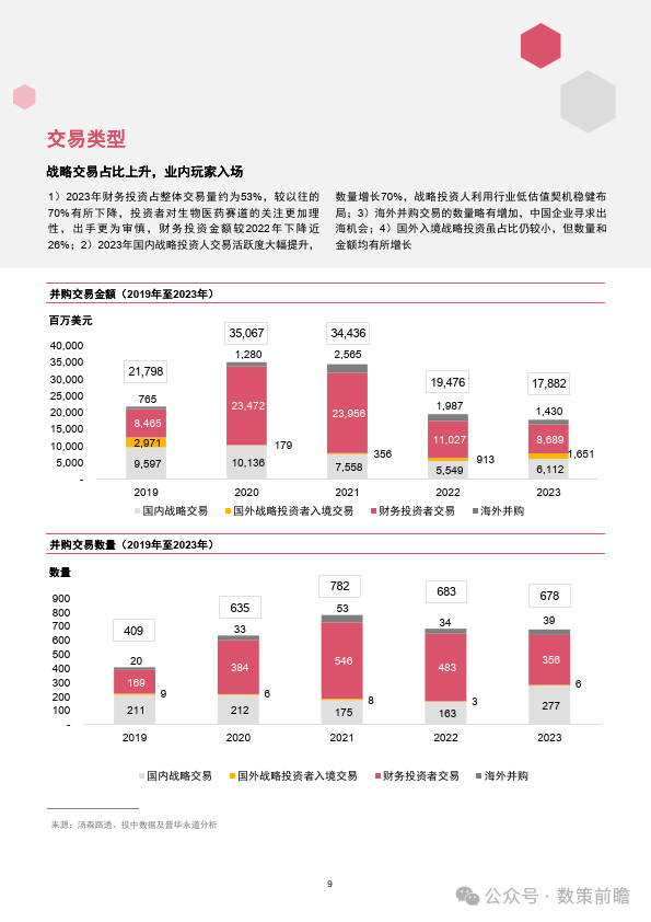 今天分享的是【2023年企业并购市场回顾—中国医药和生命科学行业】 报告出品方:普华永道