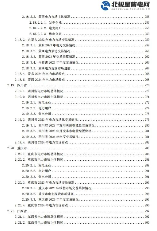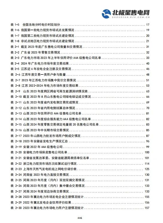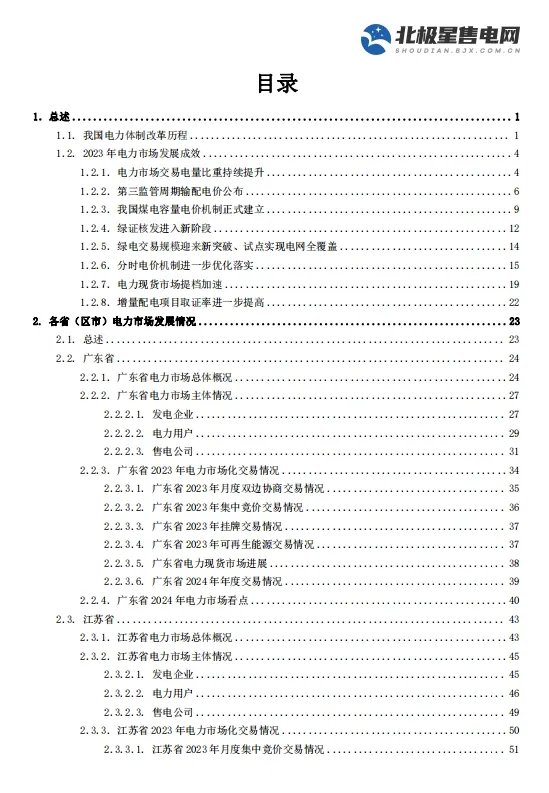 报告共分四章,第一章2023年电力市场发展成效,第二章各省(区市)电力市场发展情况,第三章电力市场趋势与展望,第四章发电量、用电量及装机量。