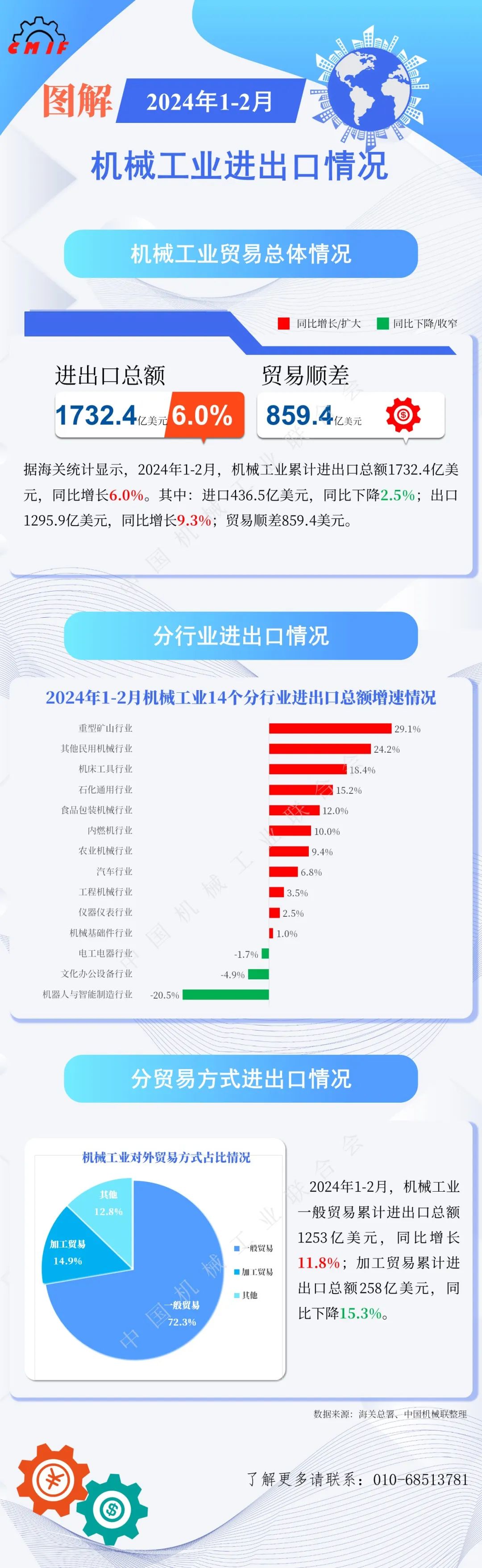 【行业数据】2024年1-2月机械工业进出口情况