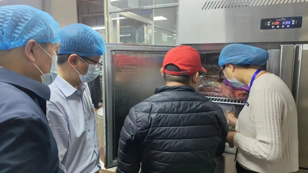 在食堂后厨现场指导中陈会长又分别对餐具清洗消毒保管环节、食品储存加工环节和分餐保鲜环节进行详细的指导。