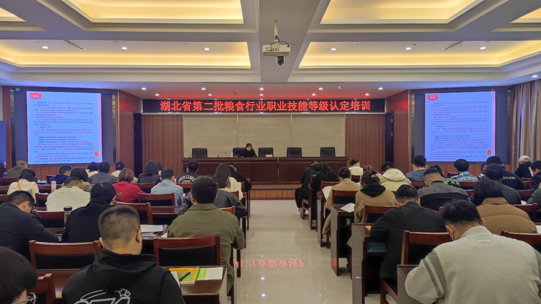为深入贯彻落实党的二十大关于“实施人才强国战略,拓展技能人才职业发展通道、强化科技人才支撑”的精神,健全完善科学合理的粮食行业技能人才队伍体系,3月25日,由湖北省粮食局和湖北省职业技能鉴定指导中心指导和支持,湖北省粮油食品质量监督检测中心、湖北大学知行学院、湖北省储备粮油管理有限公司和武汉轻工大学共同协办,省粮食行业协会组织的湖北省第二批粮食行业职业技能等级认定培训在武汉正式开班。省检测中心副主任刘勇、教授级高工熊宁,湖北大学知行学院副教授刘爱红,省储备粮武汉储备库有限公司支部书记伊瑜,以及来自全省粮食系统的近200名学员参加开班仪式。