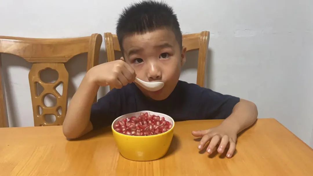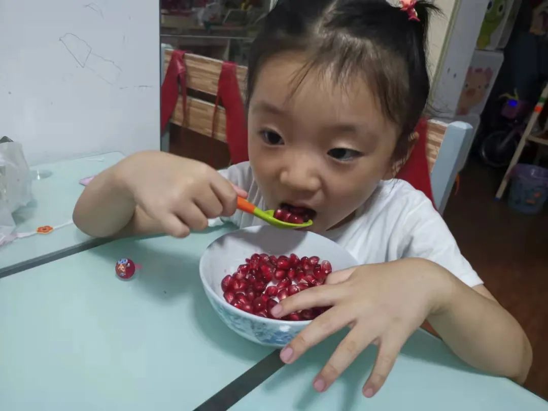 原来石榴的营养价值这么丰富呀!小朋友们都迫不及待的品尝起来。