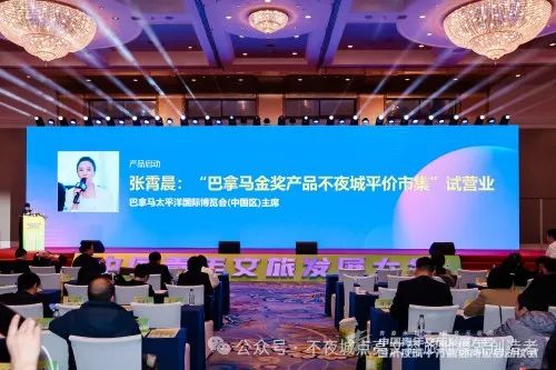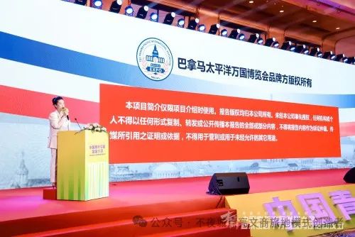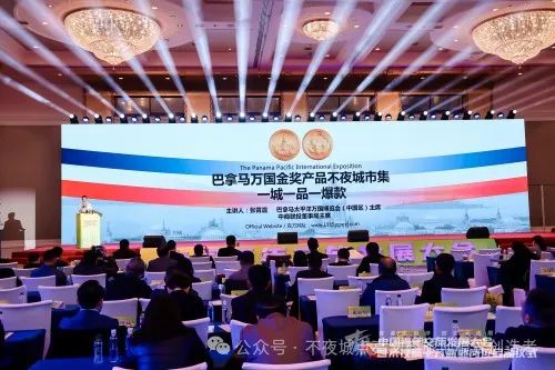 会上,巴拿马太平洋国际博览会(中国区)主席张霄晨,以《巴拿马万国金奖产品不夜城市集》为主题发表演讲。