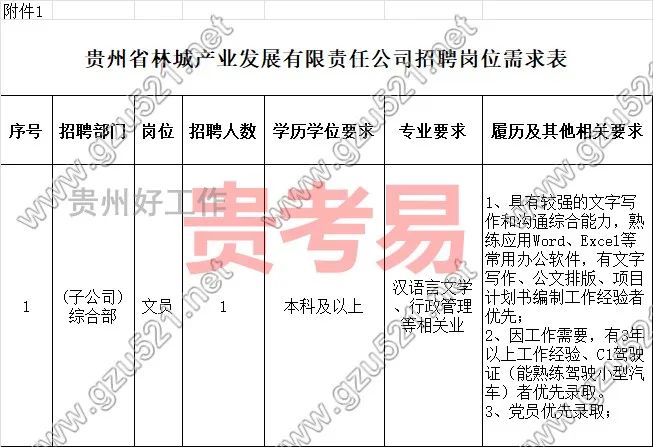 贵州省林城产业发展有限责任公司2024年第一次招聘方案