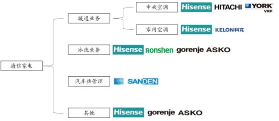 海信家电业务非常专注,主要做空调、冰洗等产品,拥有“海信”、“科龙”、“容声”三个品牌。