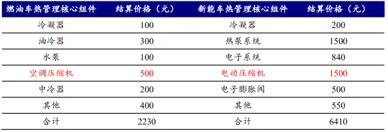 量方面受益于电动汽车的销量爆发;价方面新能源车单车价值量要较燃油车提升很多,就拿空调压缩机来看,燃油车单车价值才500元,而电动车高达1500元,提升3倍空间。