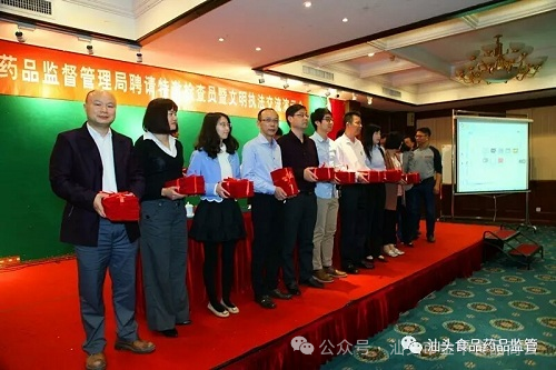 市食药监局吴楚斌局长及在家班子、市局全体人员,各区(县)局、药检所领导班子成员、各股室股长(主任)参加了仪式。会上吴楚斌局长指出,食品安全工作是一项复杂的社会系统工程,必须创新监管制度,要借助特检员这个平台,提高监管效能。他希望特检员认真履职,发挥好智囊作用、桥梁纽带作用、监督作用、助手作用,监督食药监部门依法行政,协助辅助监管执法工作。他要求特检员遵守国家有关法律法规和规章制度,依法依规,文明执法,严于律己,恪尽职守,公正廉洁,实事求是,严格按照程序开展工作,树立依法行政、文明执法的良好形象。