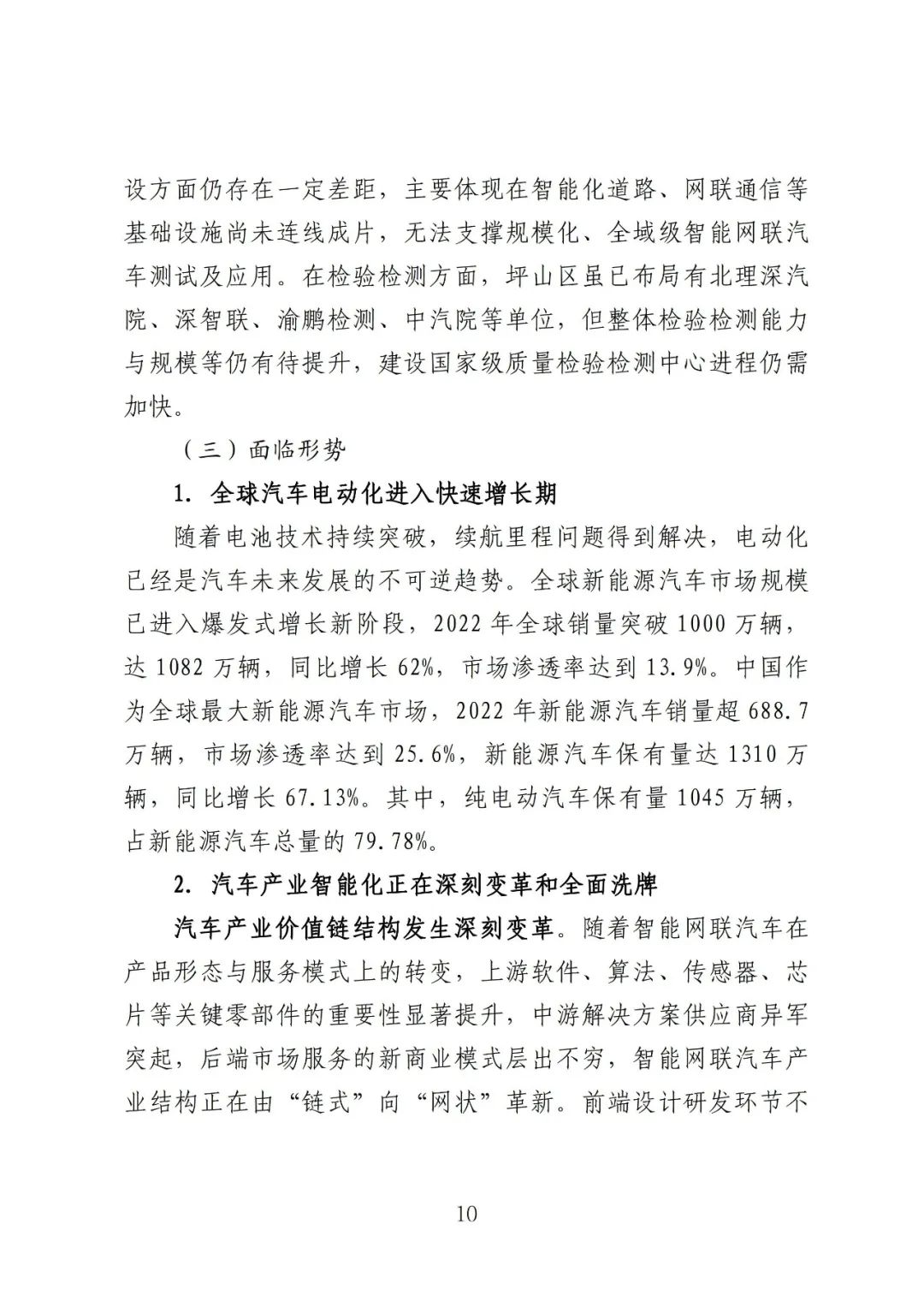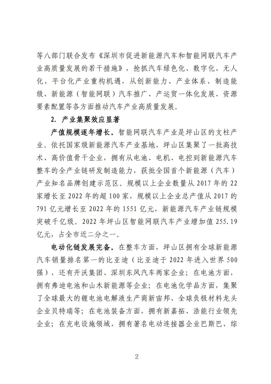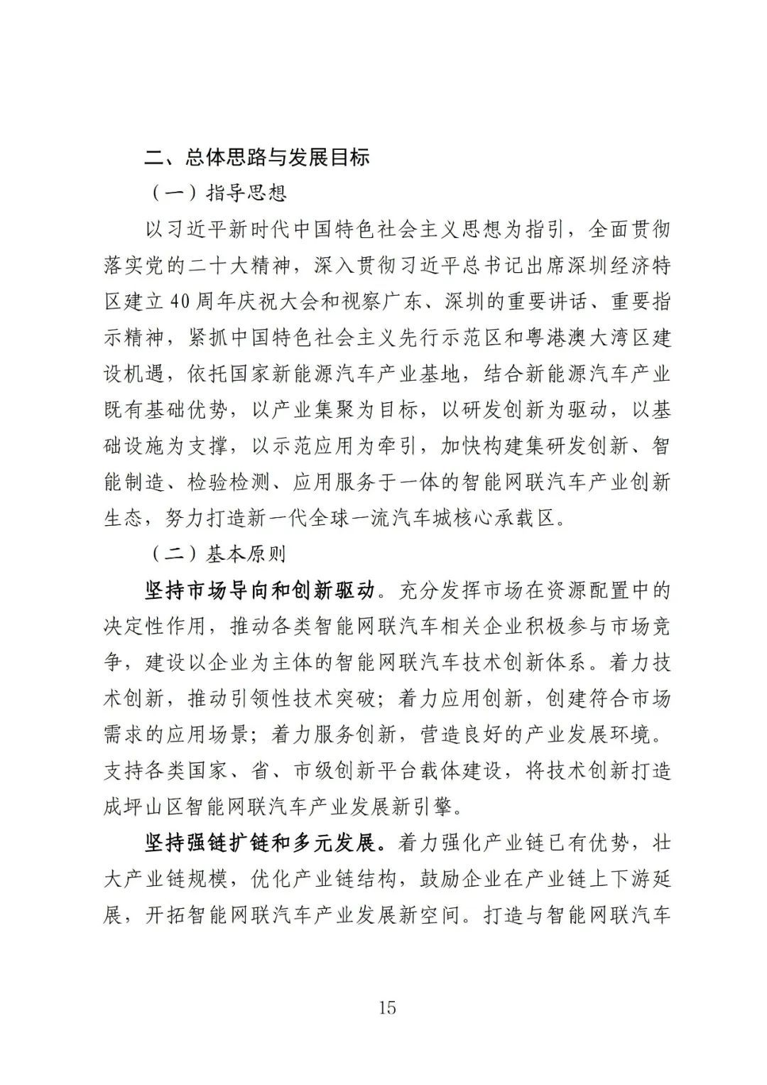 (二)总体思路与发展目标,提出将坪山打造为新一代世界一流汽车城核心承载区。坚持“龙头引领、强链扩链、软硬并举、以测促商、强化制造”的发展思路。坚持市场导向和创新驱动,坚持强链扩链和多元发展,坚持交叉融合和开放协同,坚持高质量发展和产业集聚。
