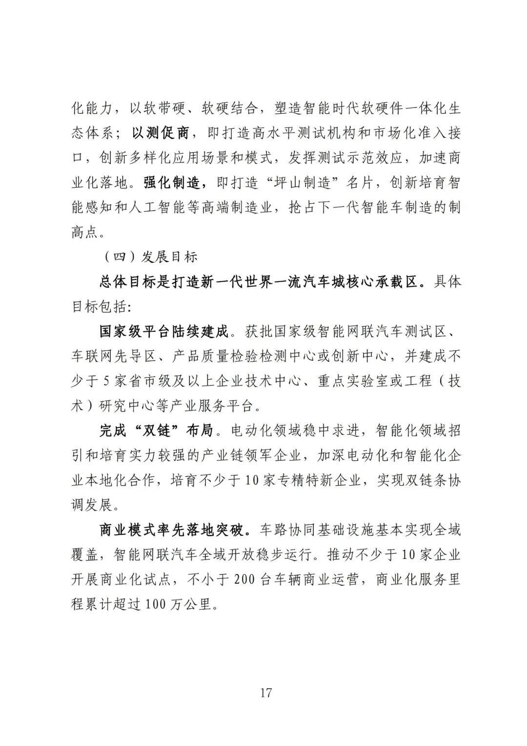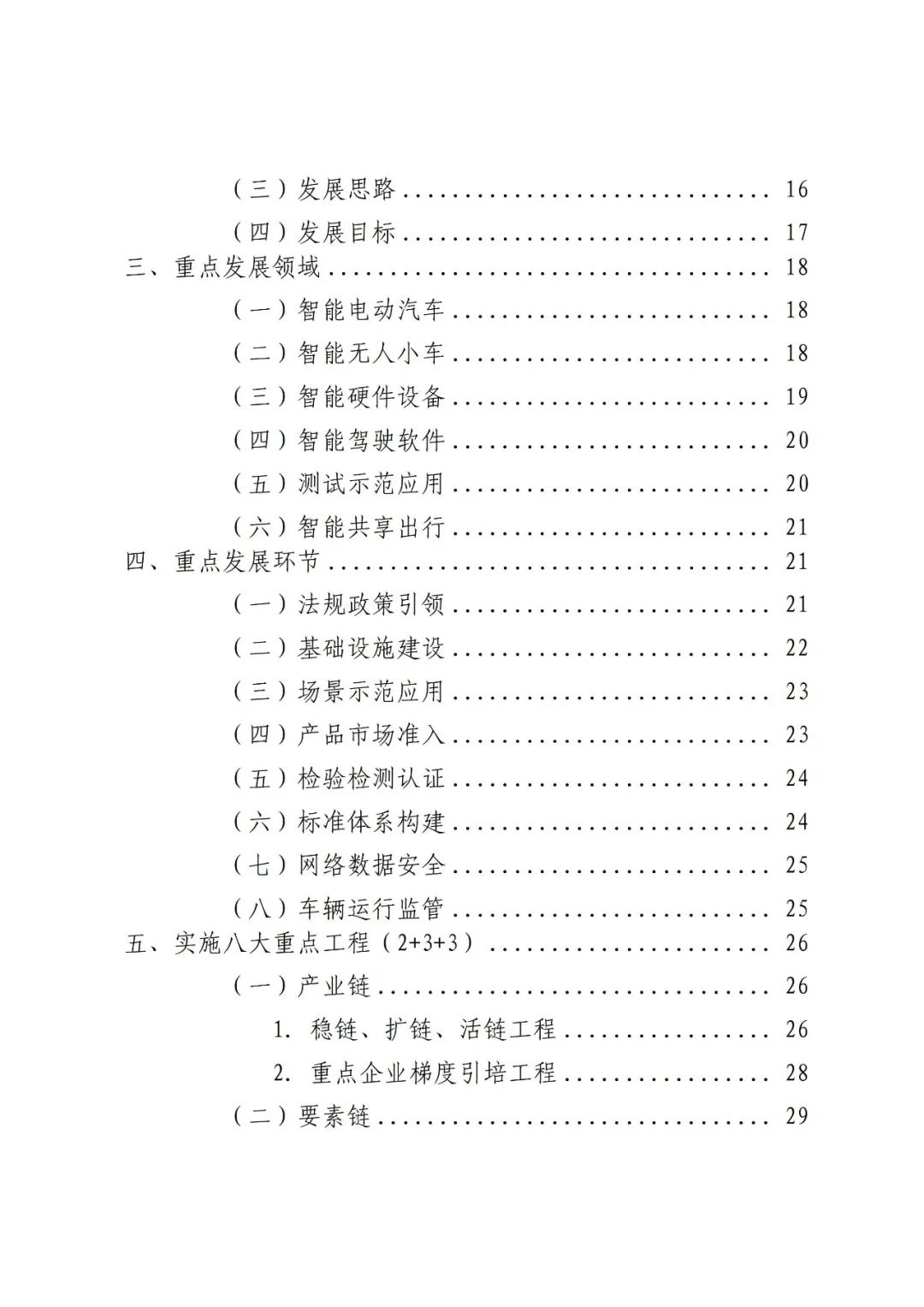 (三)重点发展领域,包括智能电动汽车、智能无人小车、智能驾驶硬件、智能驾驶软件、测试示范应用、智能共享出行。