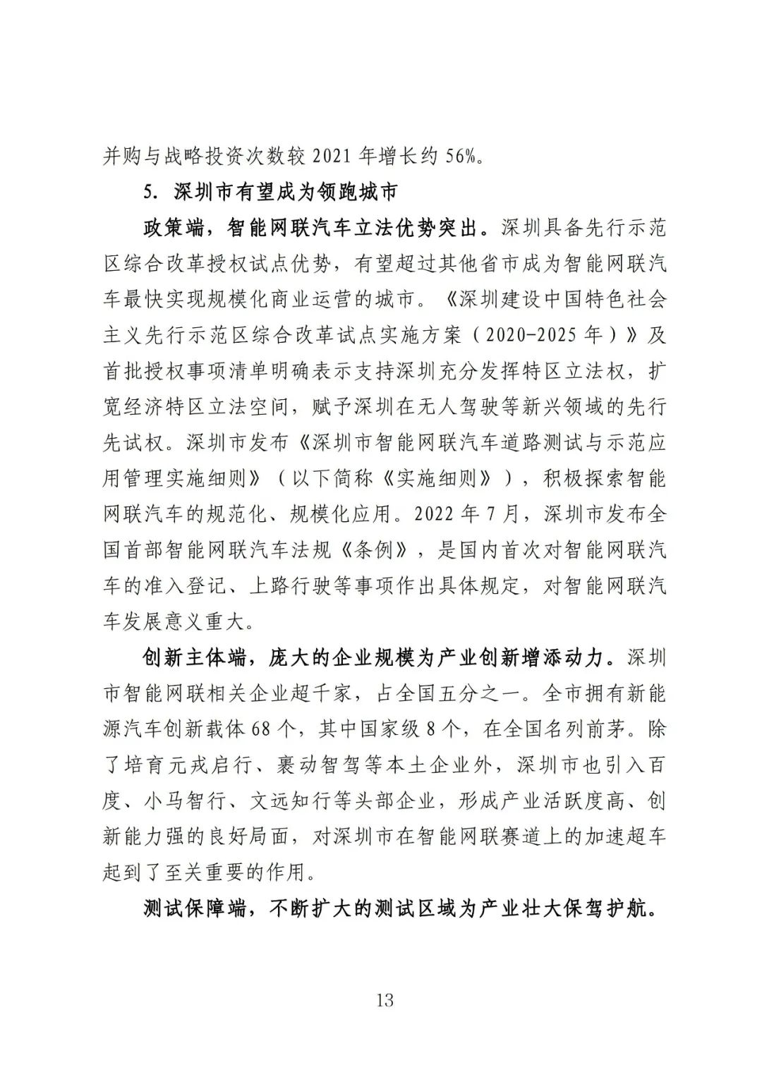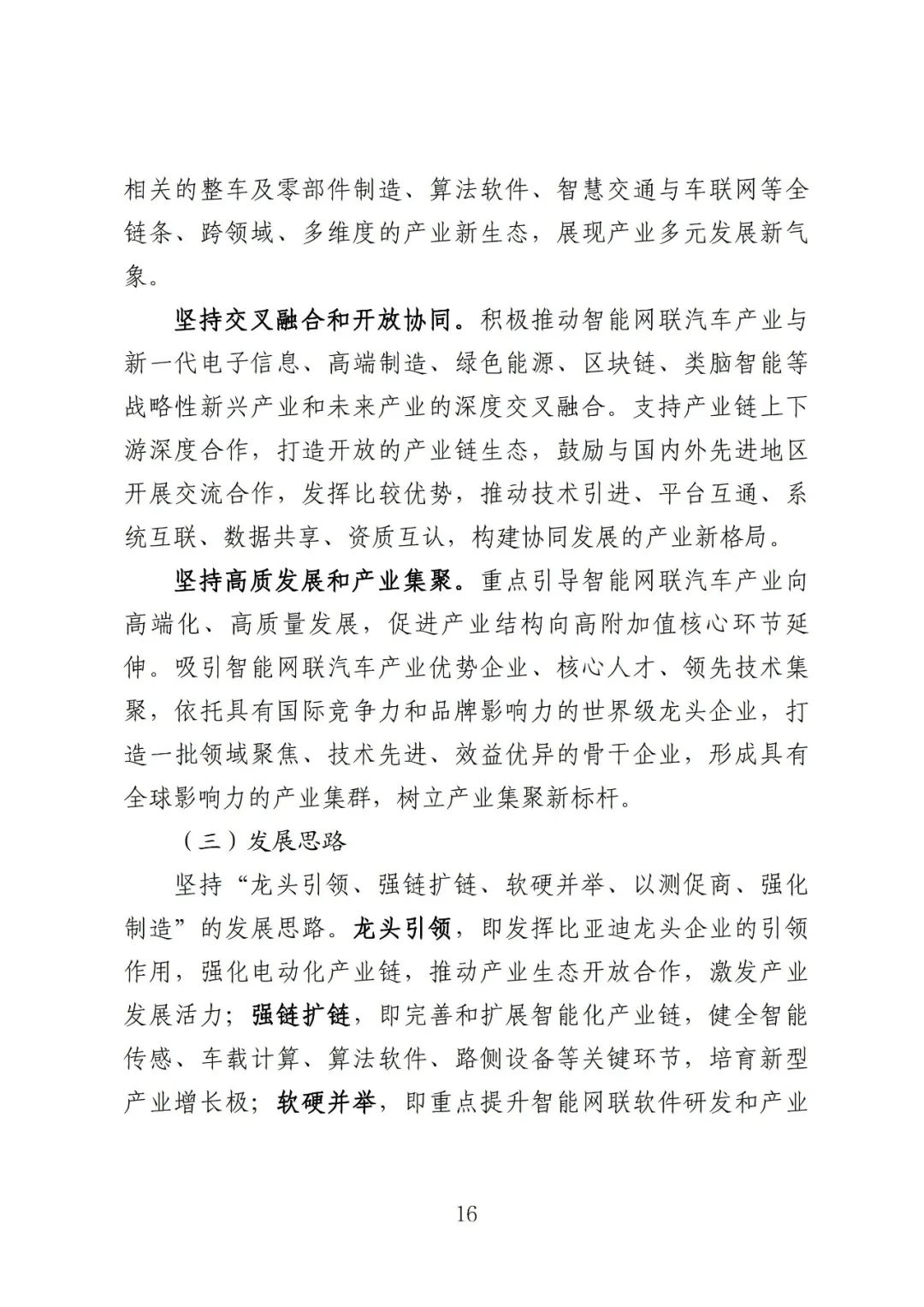 (四)重点发展环节,包括法规政策引领、基础设施建设、场景示范应用、产品市场准入、检验检测认证、标准体系构建、网络数据安全、车辆运行监管。